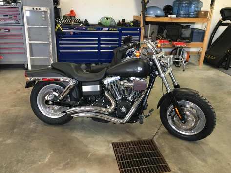 2010 Harley Davidson Dyna FXDF. two tone matte black and grey paint scheme and polished aluminum wheels. Bike is mostly stock except for a screaming eagle air intake.