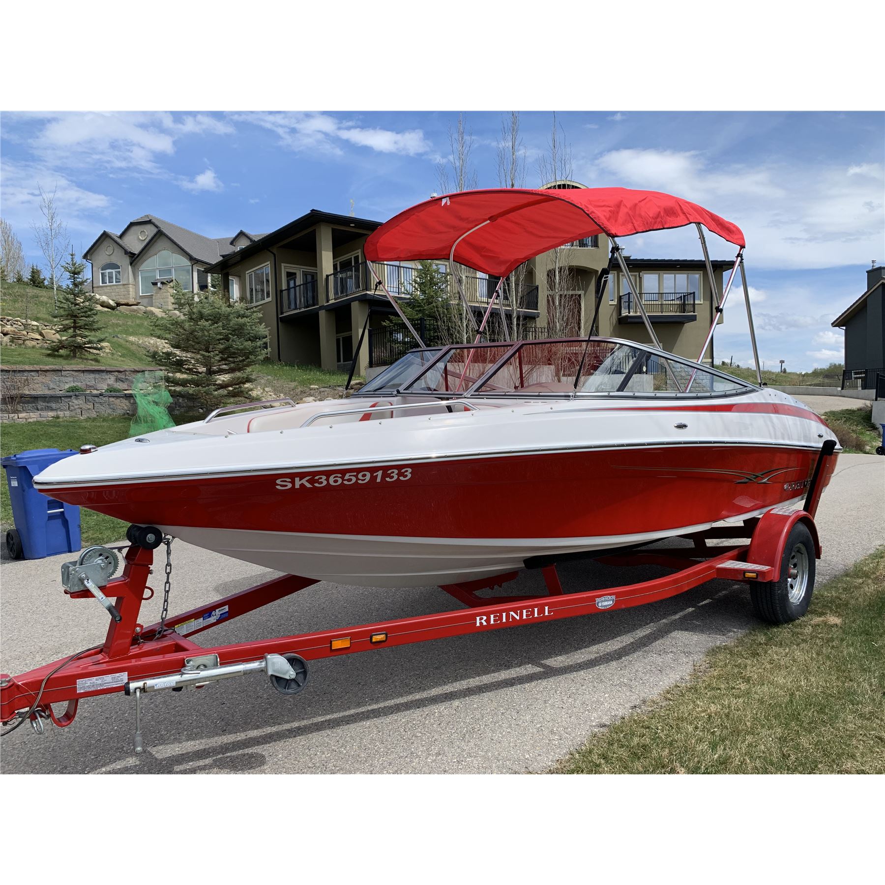 2013 Reinell 191 LSE Bow Rider Boat. This boat and trailer are in excellent condition. Has two separate covers as well as a brand new bimini top. 19'7" long. The trailer has a fold away hitch so will fit in most garages. 200hp Volvo Penta V6. You will not find another used boat in better condition. Beam: 7 ft. 8 in. Fuel tank capacity: 25 Standard features: Standard Features Air vents Bluetooth AM/FM /CD with remote Bilge blower Bilge pump Bow storage Carpeted storage Chrome fuel fill Courtesy lights Deluxe instrumentation package (Gauges: Speedometer, Tachometer, Voltmeter, Oil Pressure, Fuel, Trim, Temperature) Deluxe upholstery package Electric horn Euro designed curved windows with walk-thru Foam flotation Full length stringers Grab rails Hand-laid hull Lighted rocker switches Marine fuel tank 5 STD Mooring cleats Navigation lighting Plush carpet Stainless Steel cup holders Stainless steel ski tow Stainless steel U-bolts Standard Dash System Sun lounging deck Swim ladder, three step Tempered safety glass