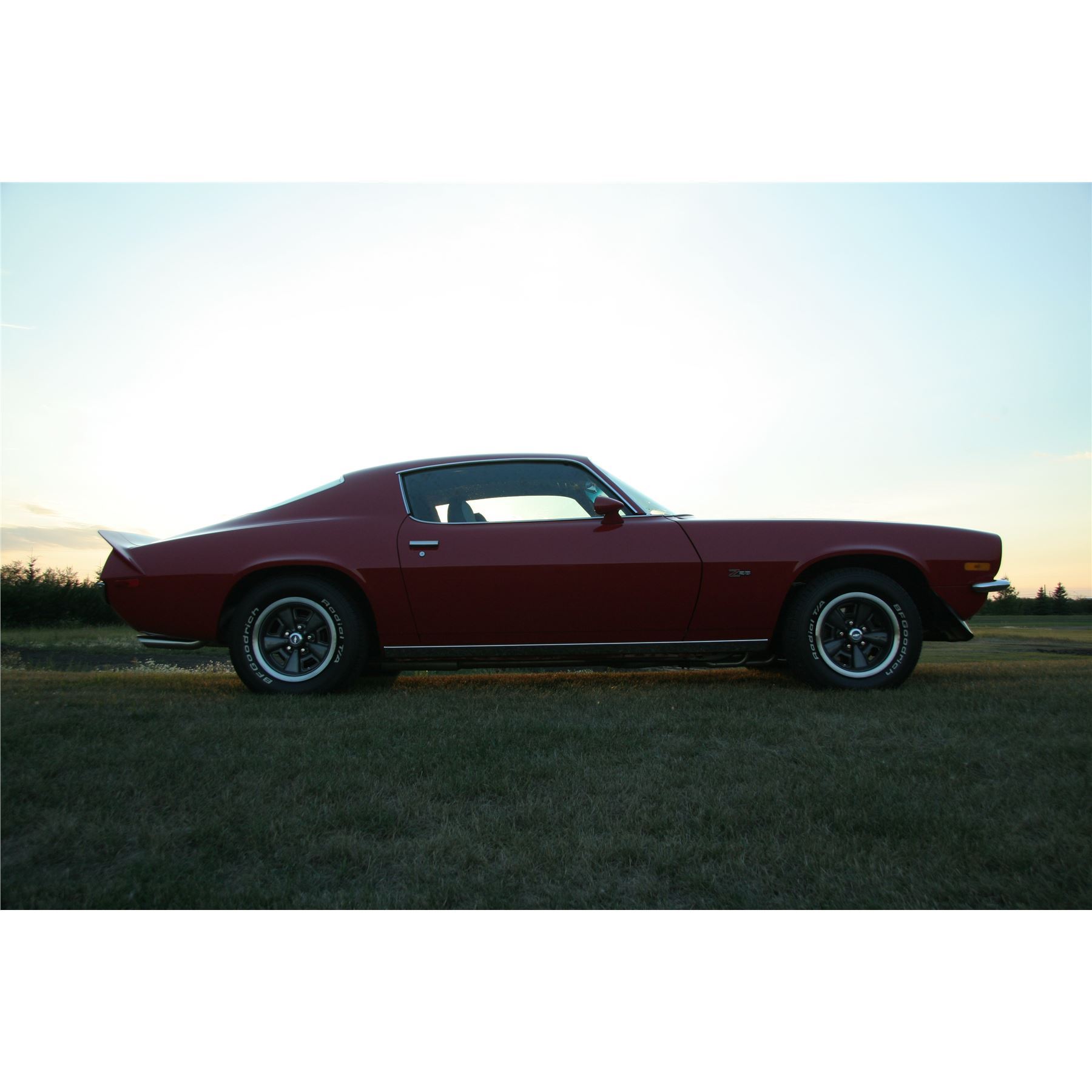 WITH OVER 100,000 CAMAROS PRODUCED IN 1971, LESS THAN 5% OF THE TOTAL PRODUCTION WERE Z-28 MODELS AND LESS THAN 15% WERE EQUIPPED AS A RALLY SPORT, CALCULATINGTHIS CAR TO BE ONE OF ONLY A FEW HUNDRED EXAMPLES FACTORY EQUIPPED WITH BOTH THE PERFORMANCE LT-1 Z-28 DRIVETRAIN AND THE SPLIT BUMPER RALLY SPORT PACKAGE. RECENT COMPLETELY RESTORED WORLD OF WHEELS PROVEN SHOW WINNER. THIS IS ONE OF THE NICEST RARELY SEEN EXAMPLES AVAILABLE ANYWHERE THAT DISPLAYS SHARP LINES AND PRIDE THROUGHOUT THE RESTORATION. FOR ADDITIONAL DRIVING PLEASURE AND ENJOYMENT, DURING RESTORATION, IT WAS ALSO ACCOMPANIED WITH DISGUISED MODERN CUSTOM UPGRADED APPOINTMENT OF A STOCK APPEARANCE PROFESSIONAL REBUILT HIGH PERFORMANCE 350ci STROKER ENGINEPRODUCING 450 HORSEPOWER AND TREMAC TKO-600 5-SPEED TRANSMISSION WITH 3.31 POSI REAR END. LOADED WITH OPTIONS THAT INCLUDE POWER STEERING, POWER DISC BRAKES, CENTER CONSOLE, RADIO, TACH GAUGES, DUAL SPORT MIRRORS, 4-SPOKE STEERING WHEEL, FRONT AND REAR SPOILERS, TINTED GLASS, DUAL EXHAUST, RALLY WHEELS AND MORE. FINISHED IN THE ORIGINAL #S MATCHING (CODE 75) CRANBERRY RED WITH BLACK STRIPES AND VERY RARELY SEEN (CODE 789) DELUXE HOUNDS-TOOTHINTERIOR. NONE NICER!!