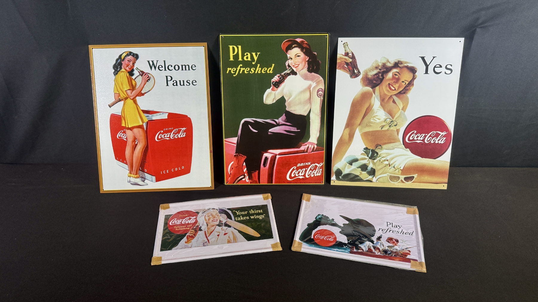 5 COCA-COLA REPRODUCTION TIN SIGNS 16" X 13"