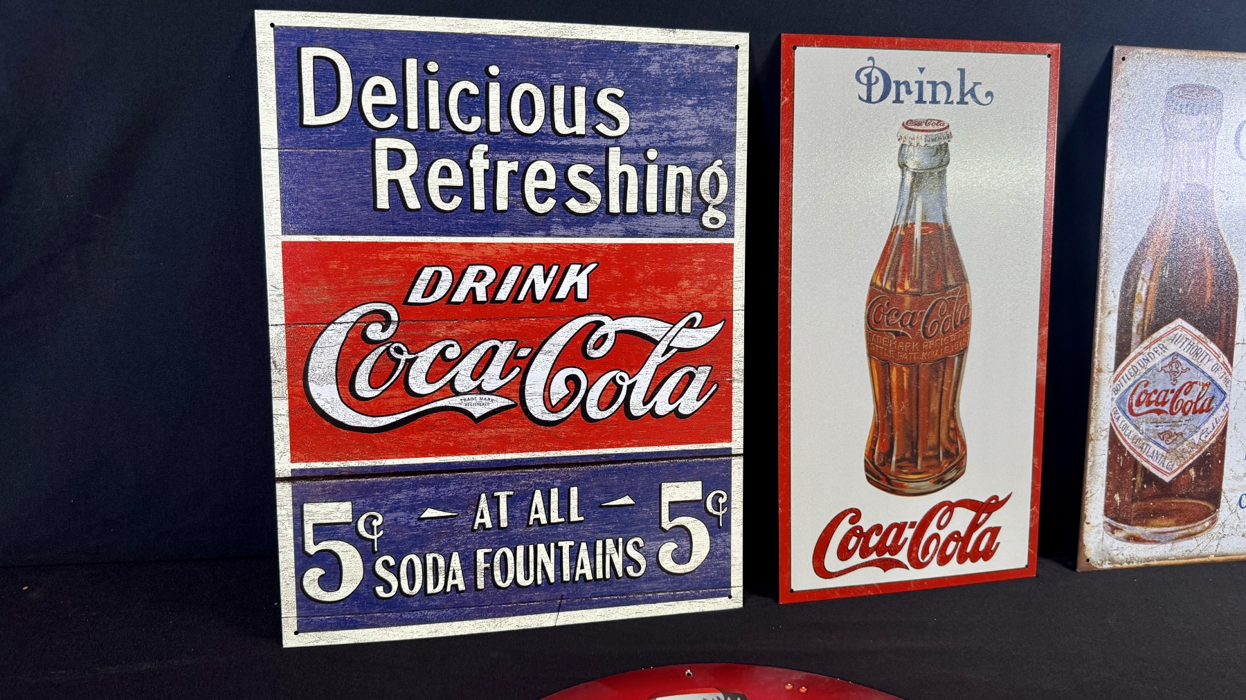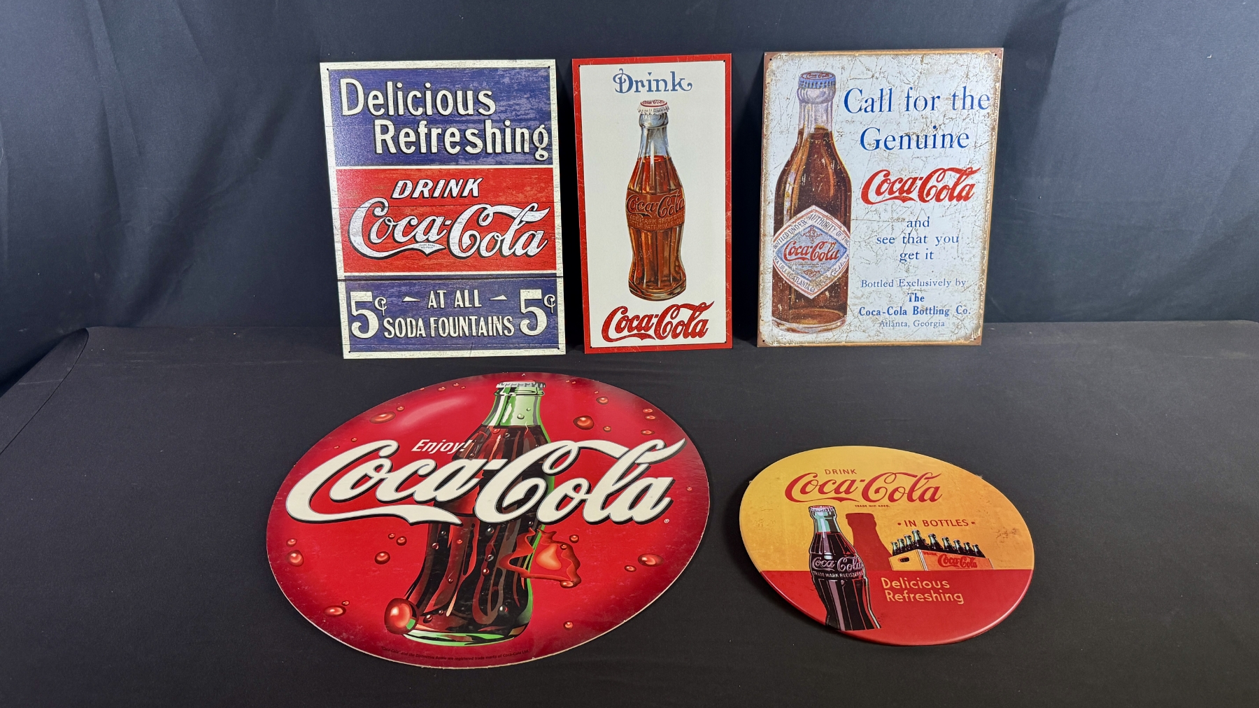 5 REPRODUCTION COCA-COLA ADVERTISING SIGN 16" X 13" (MIXED SHAPES)