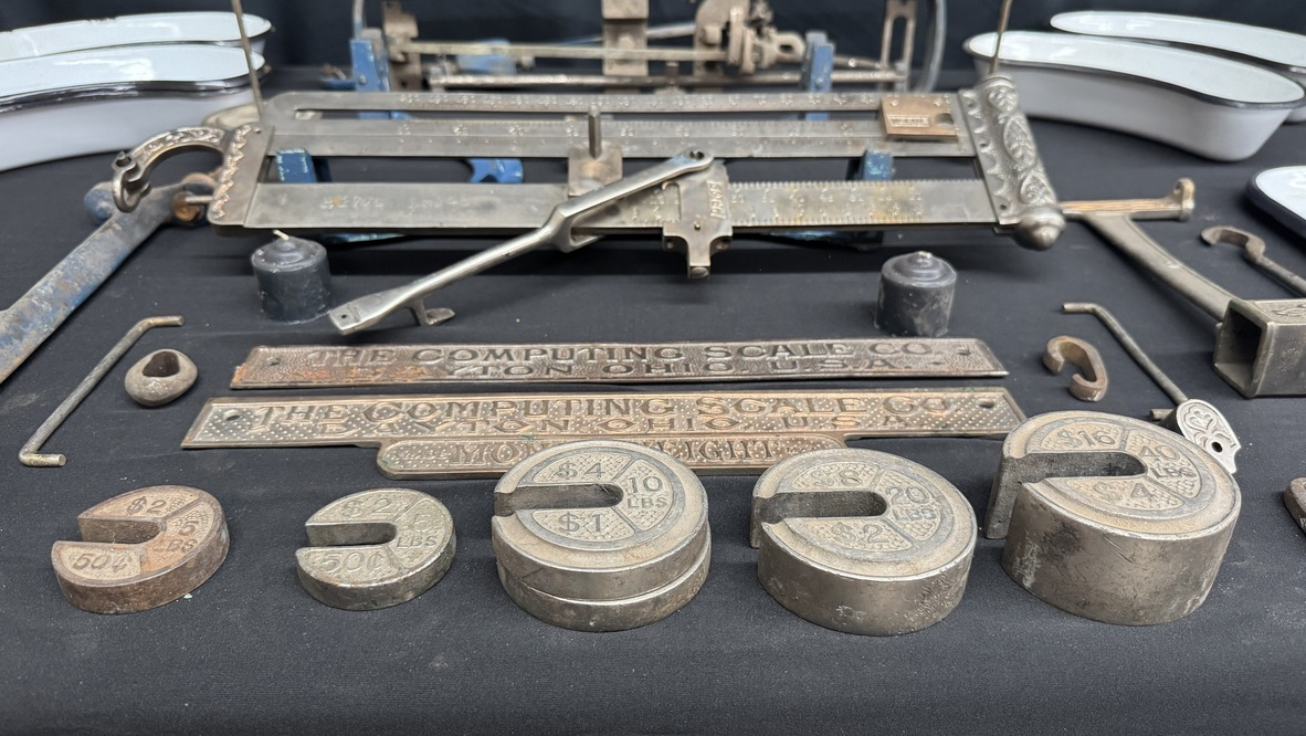 ANTIQUE COMPUTING SCALE, PARTS & WEIGHTS