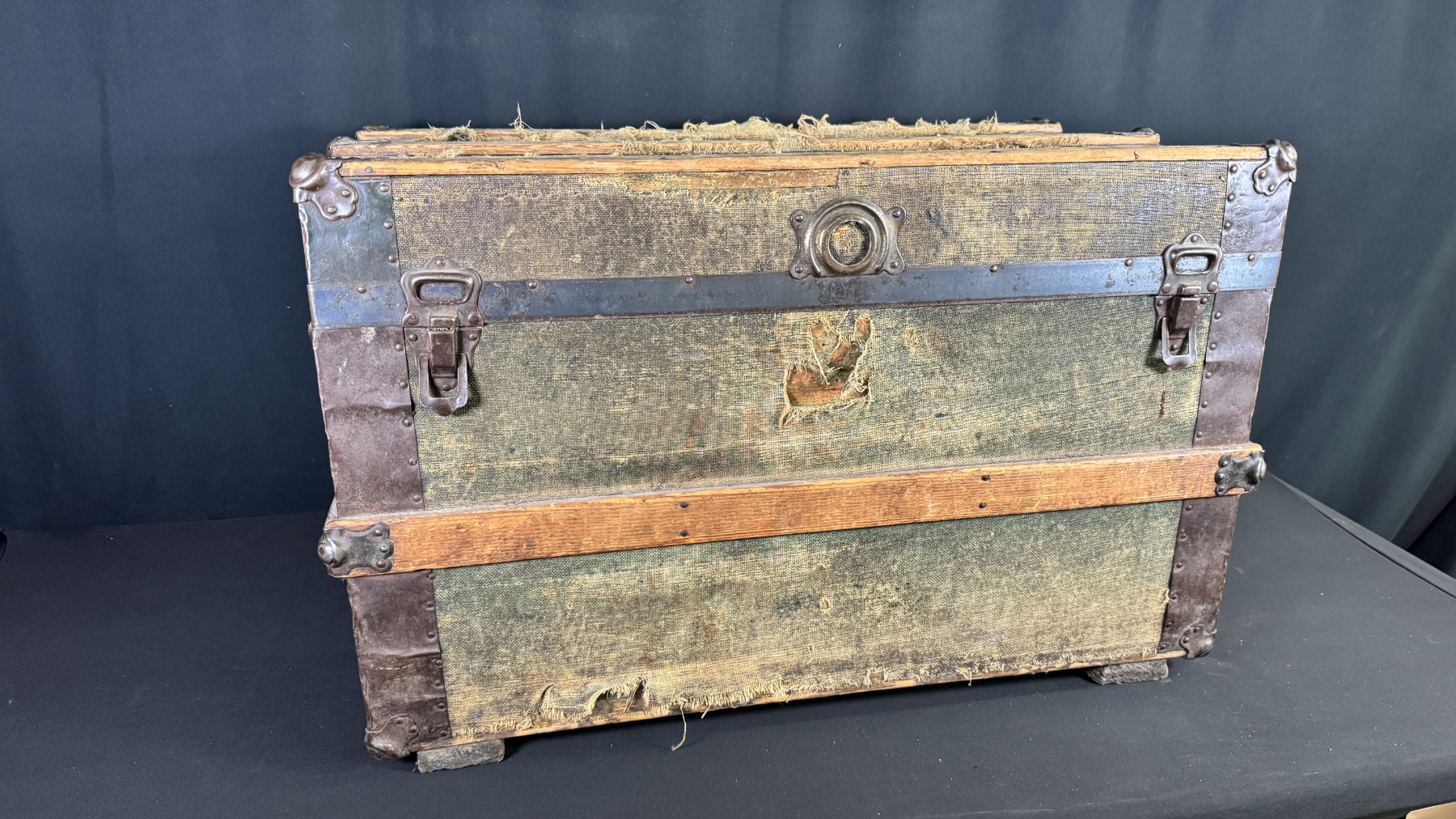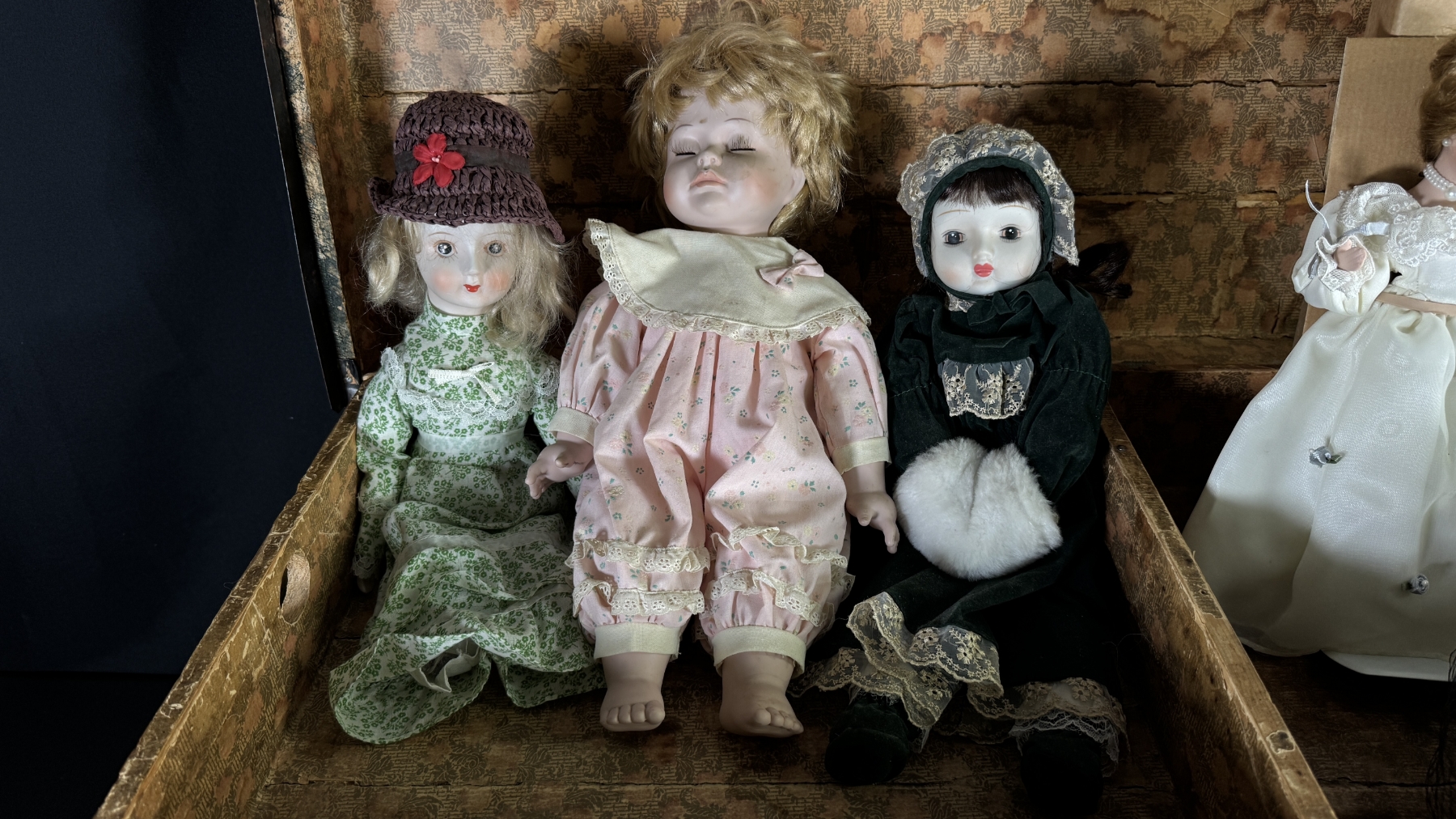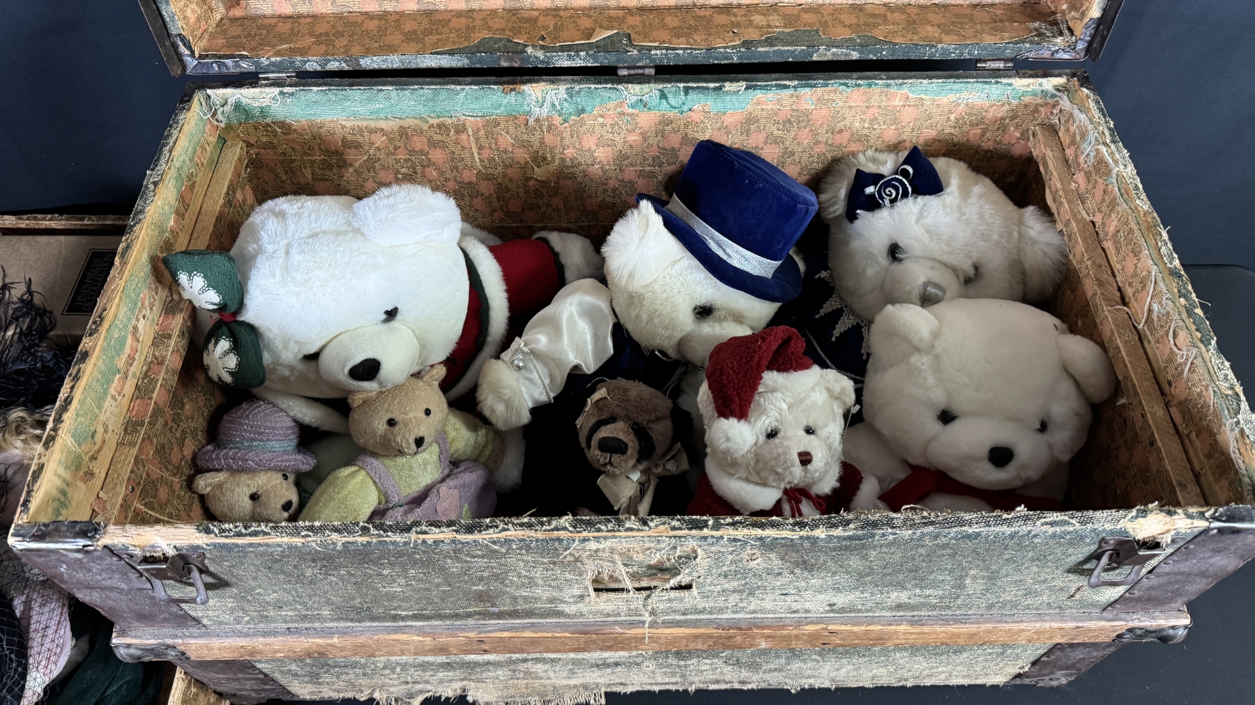 ANTIQUE TRUNK W/ PORCELAIN DOLLS & TEDDY BEARS