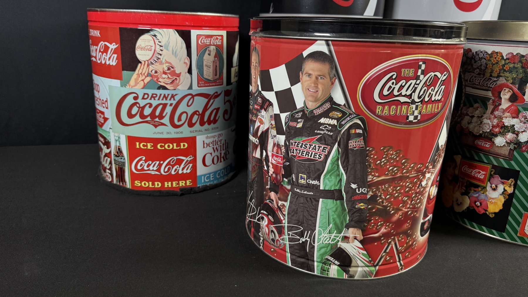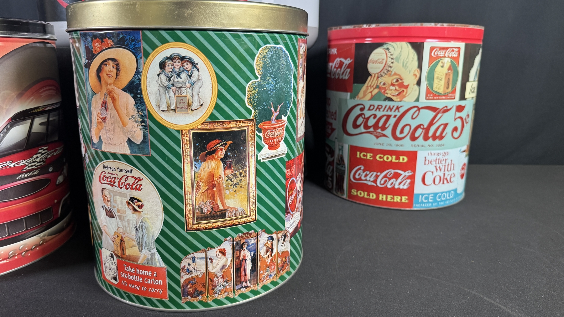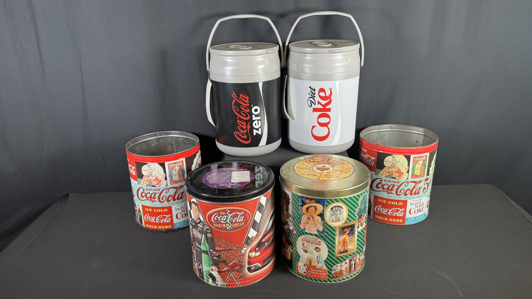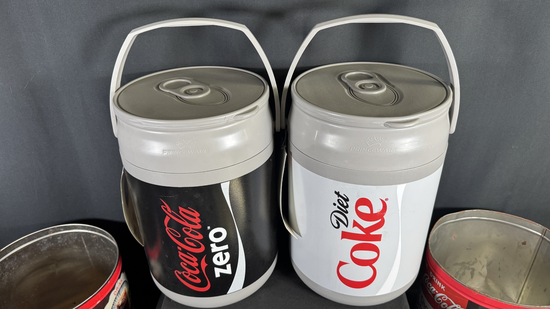 ASSORTED LARGE COCA-COLA COOLERS & TINS