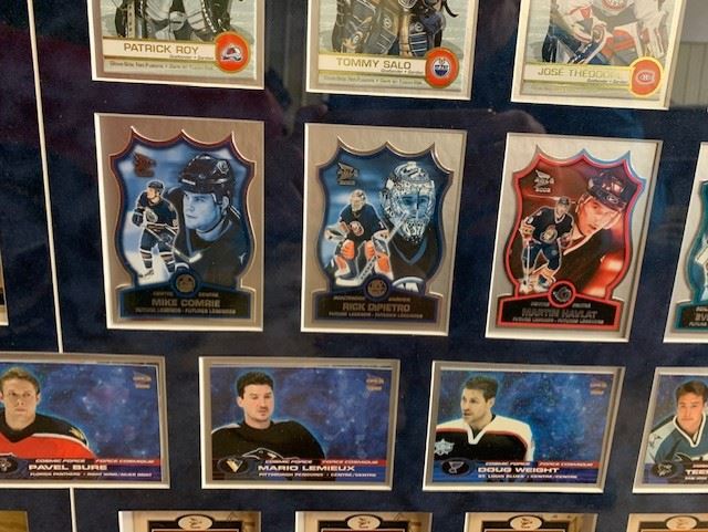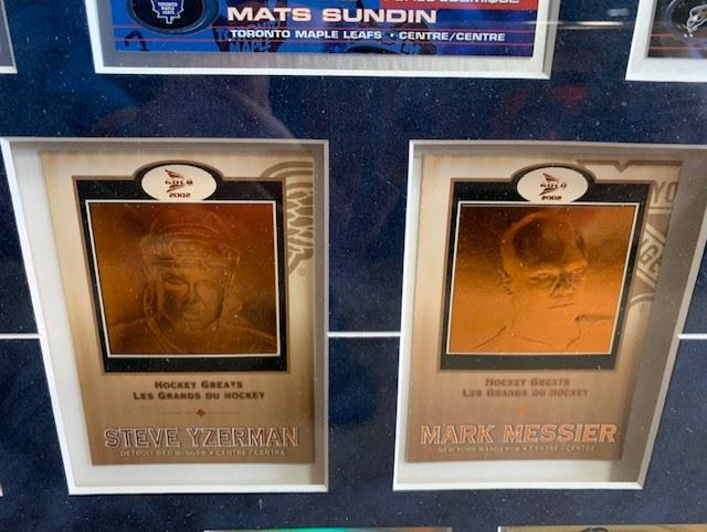 BEAUTIFULLY FRAMED 2001, 2002 PRISM GOLD HOCKEY CARD COLLECTION FEATURING MARK MESSIER, RYAN SMYTH, STEVE YZERMAN, MARIO LEMIEUX AND 62 OTHER NHL STARS