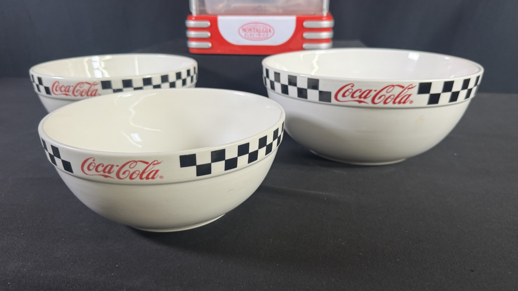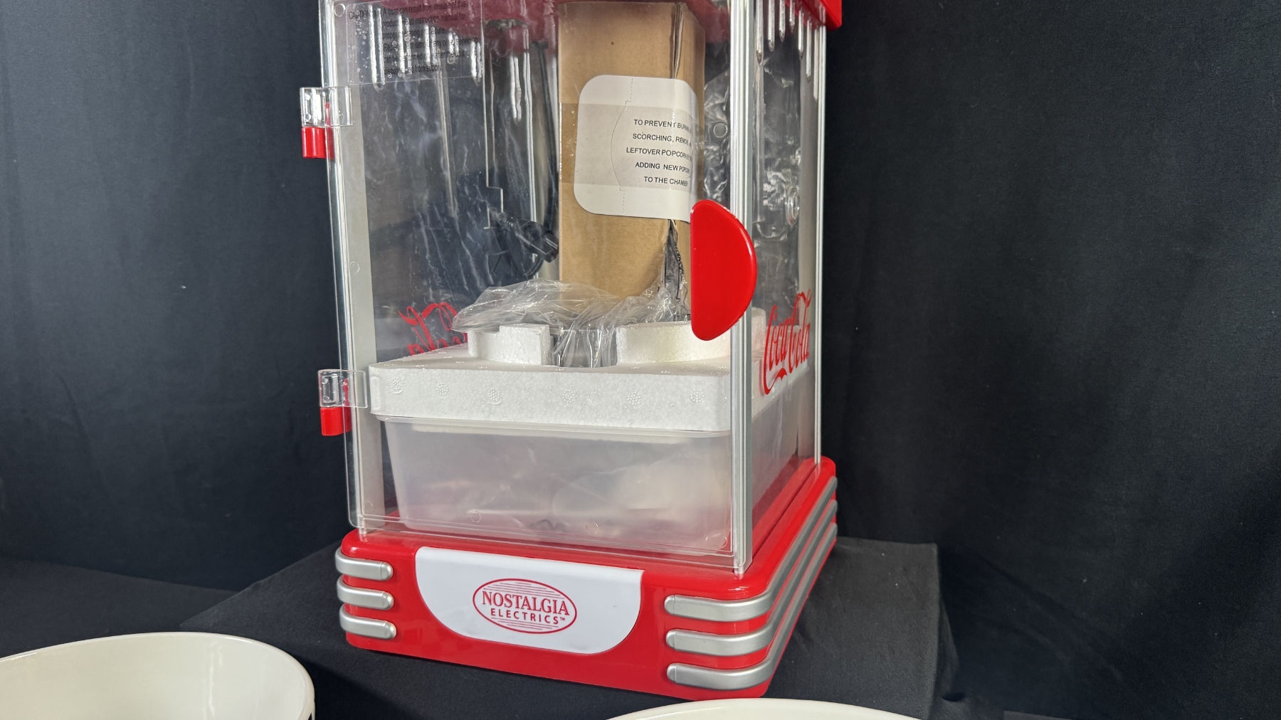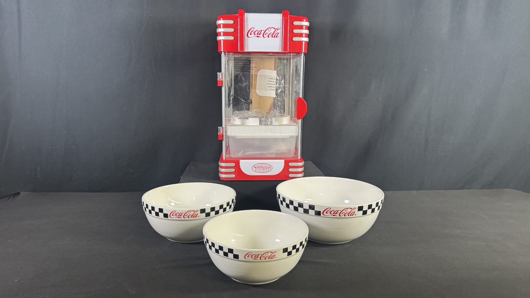 COCA-COLA NOSTALGIA ELECTRICS POPCORN MAKER & CERAMIC BOWL SET