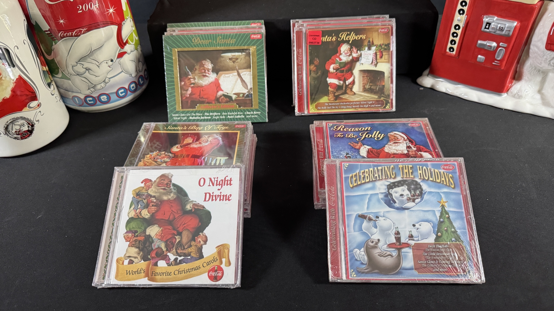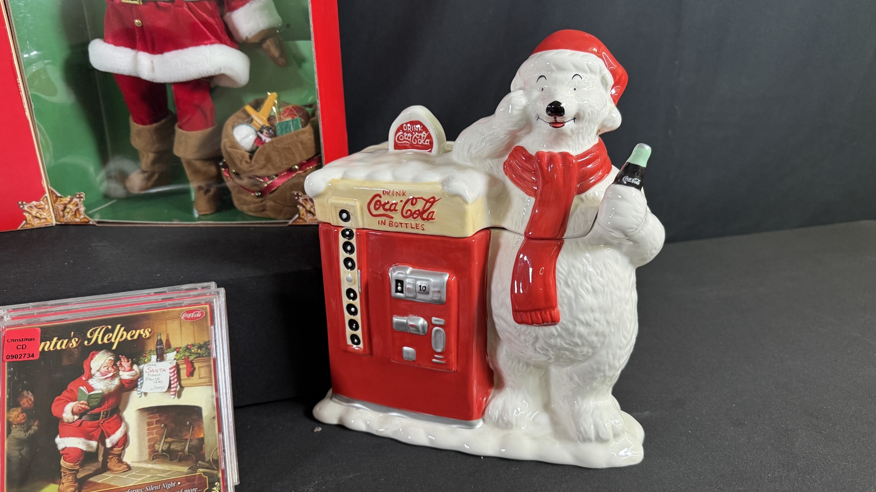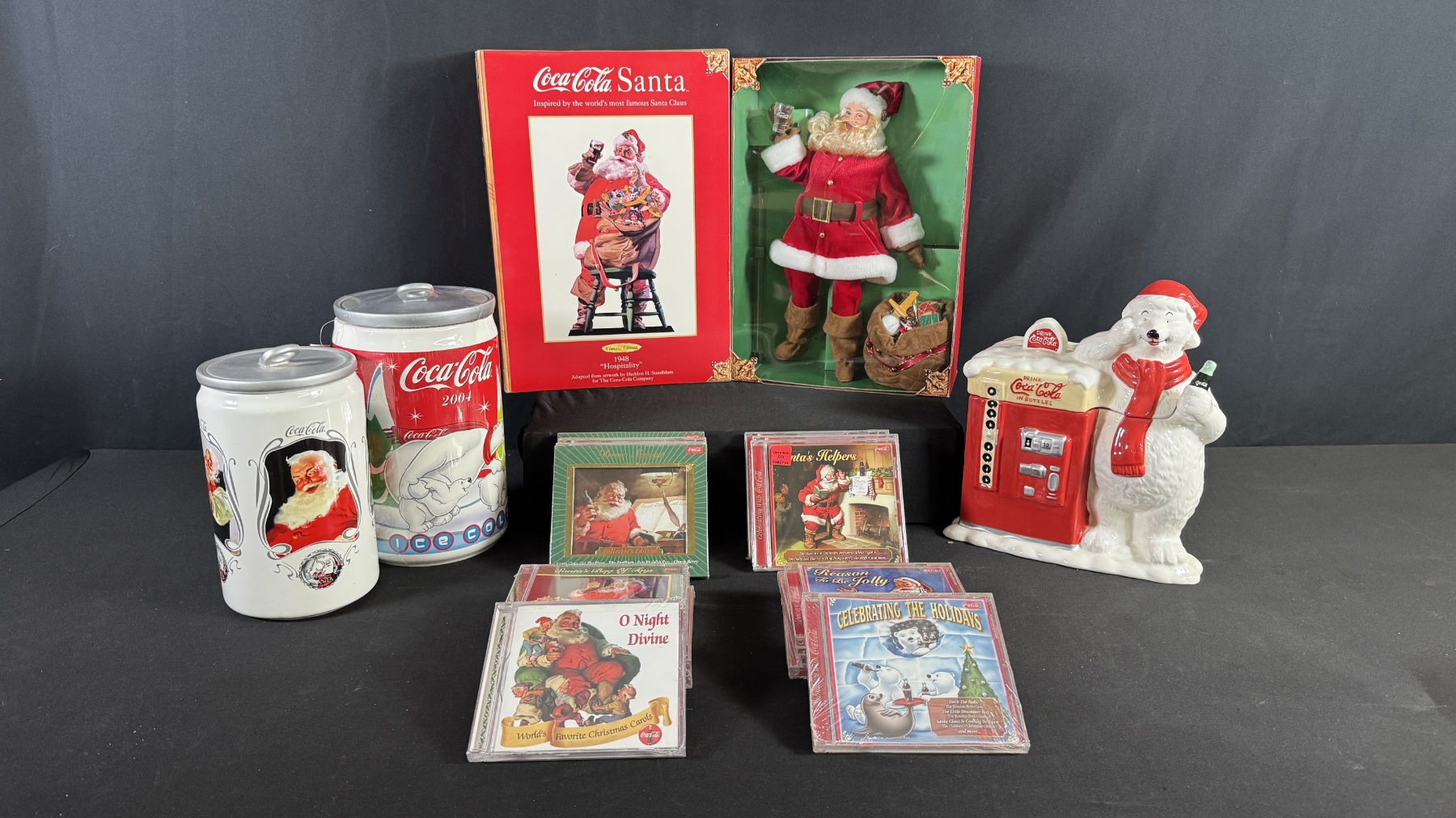 COCA-COLA SANTA CLAUS FIGURINE, COOKIE JARS, & CHRISTMAS CD's