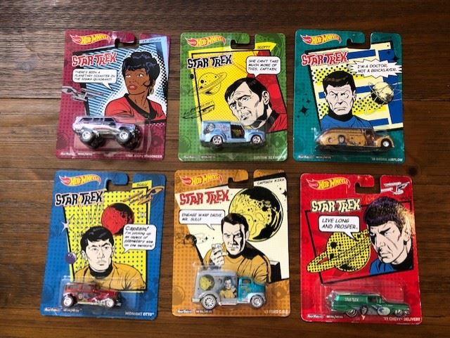 COLLECTABLE STAR TREK HOT WHEELS FULL SET INCLUDING RARE CAPTAIN KIRK 1949 FORD COE