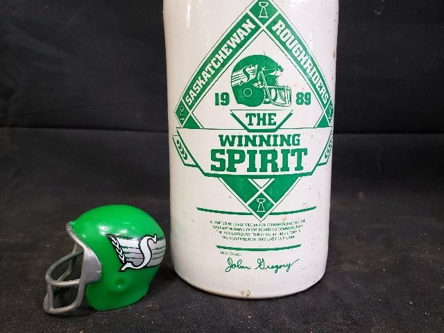 Collection of specialty bottles including 1989 Saskatchewan Roughriders John Gregory bottle No Reserve