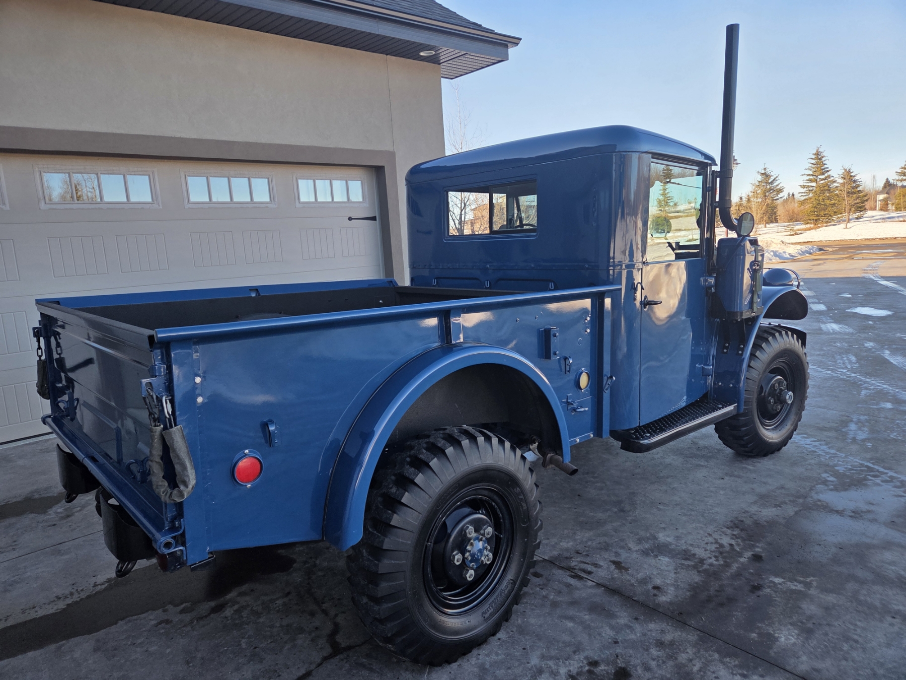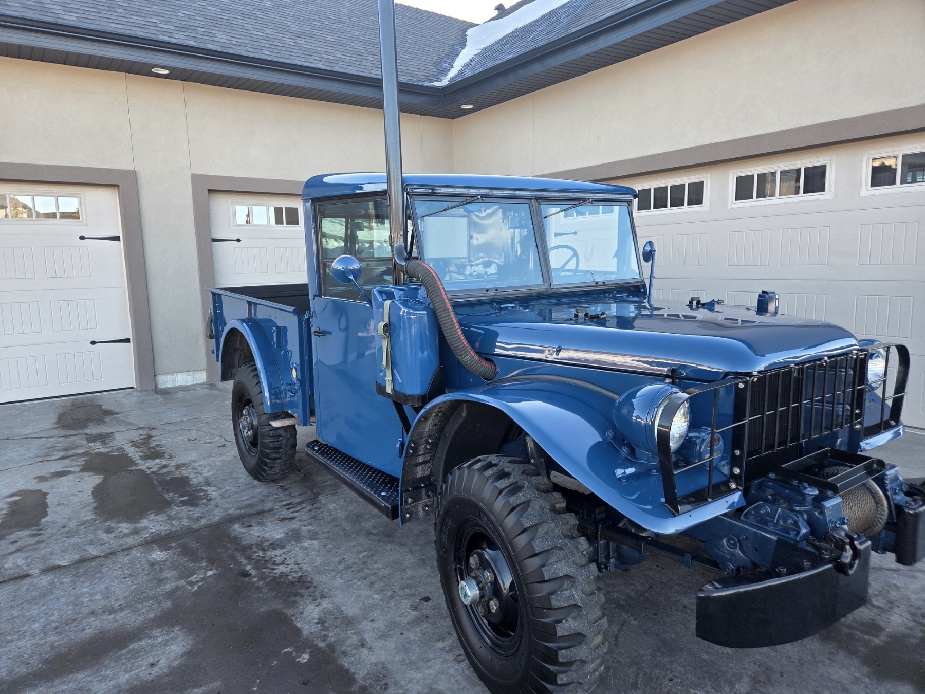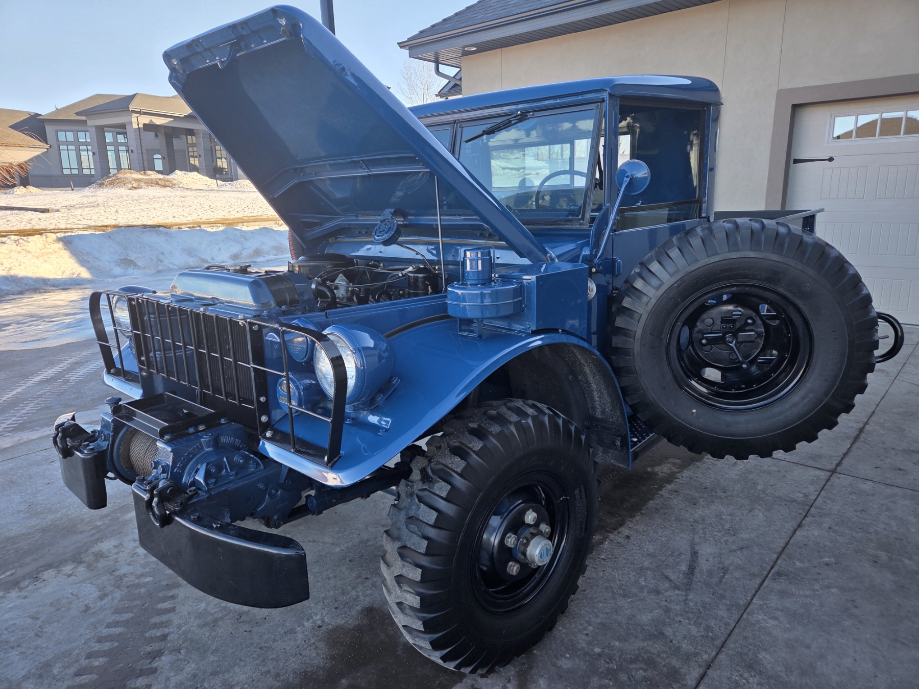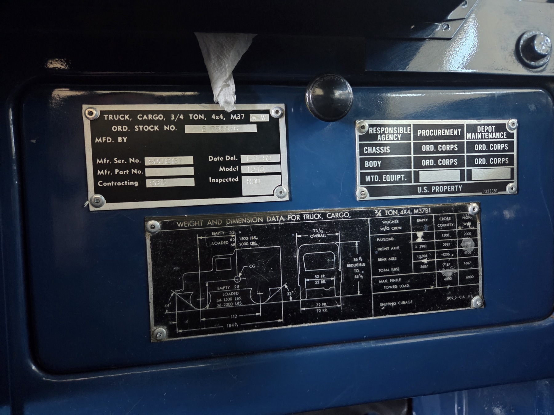 Meticulous restoration bringing this original M37 to better than new condition! All components have been reworked and operate like new, including original drivetrain (engine, transmission, transfer case & rear end, ALL rebuilt). The truck is completely rust free and has been professionally repainted to it's original & authentic Alaskan Military Ultramarine Blue. Some features include a 9000 lb. PTO-driven winch, an air intake snorkel, 2-speed transfer case, self-cleaning military grip tires, a key-operated power shut off switch, a sprayed-in box liner & fender inners, a driver's door mounted spare tire (complete with inside release mechanism), as well as a lugnut wrench & wheel chocks inside the box cubby.