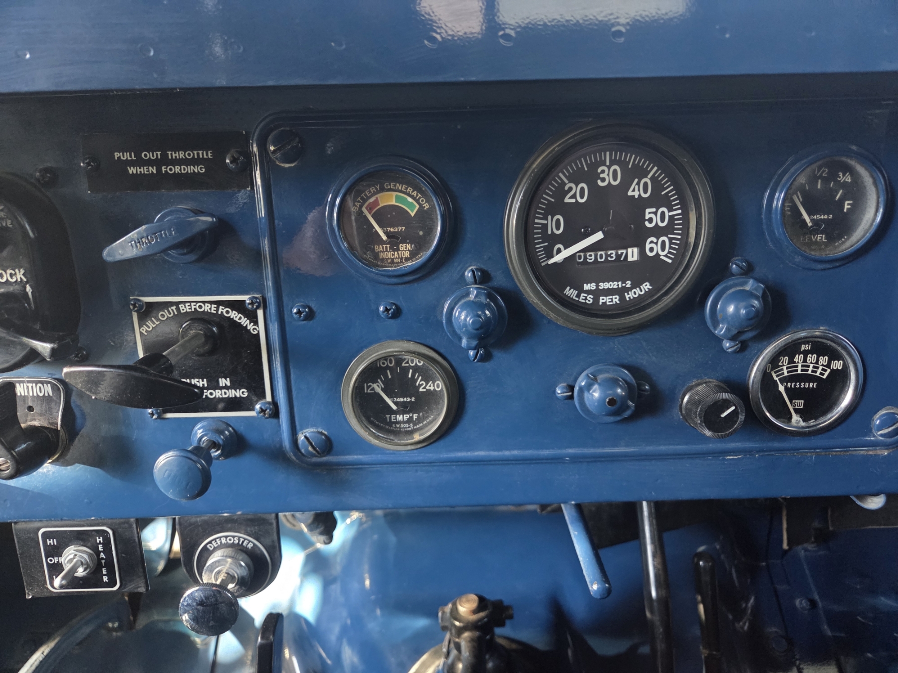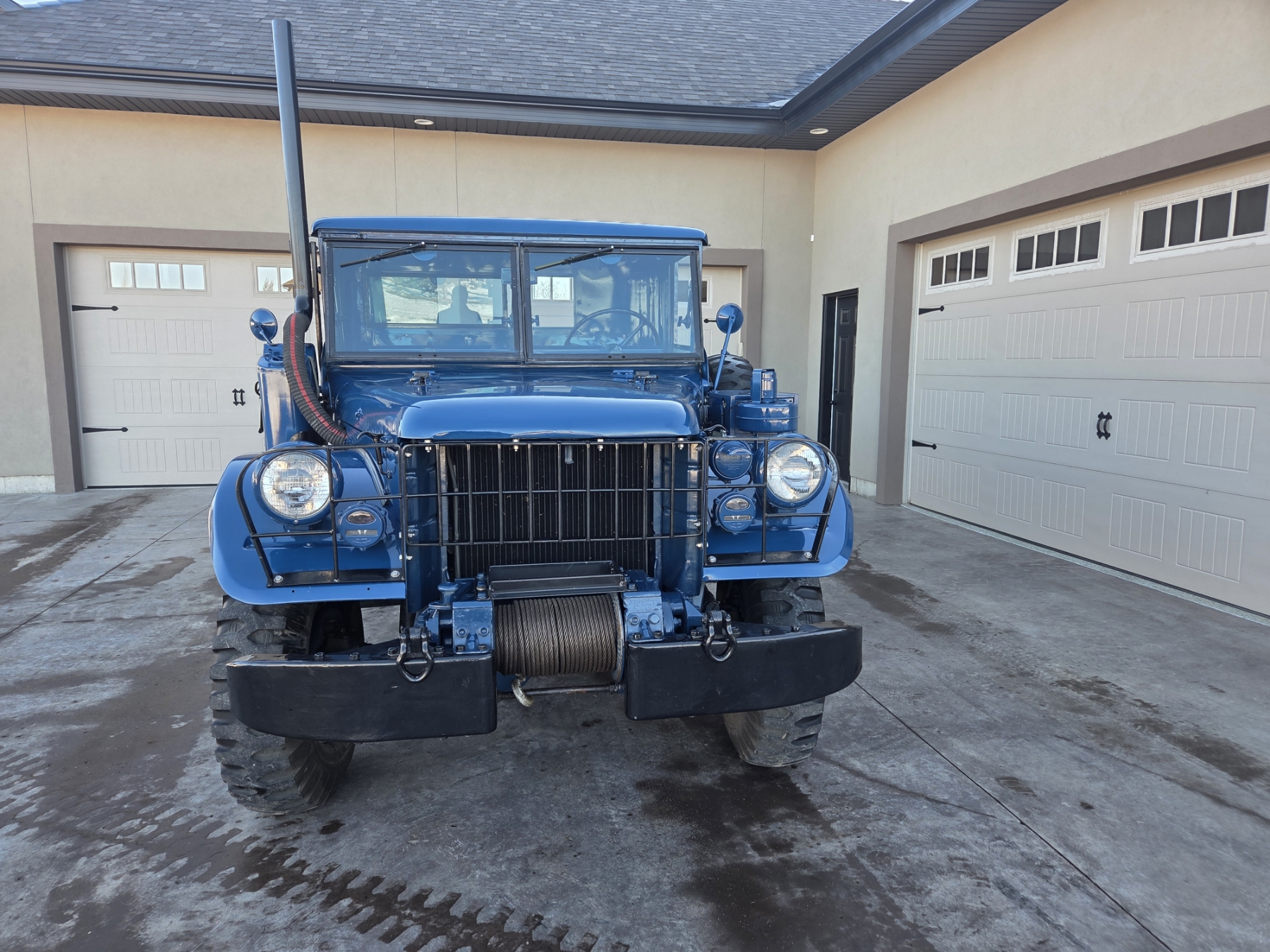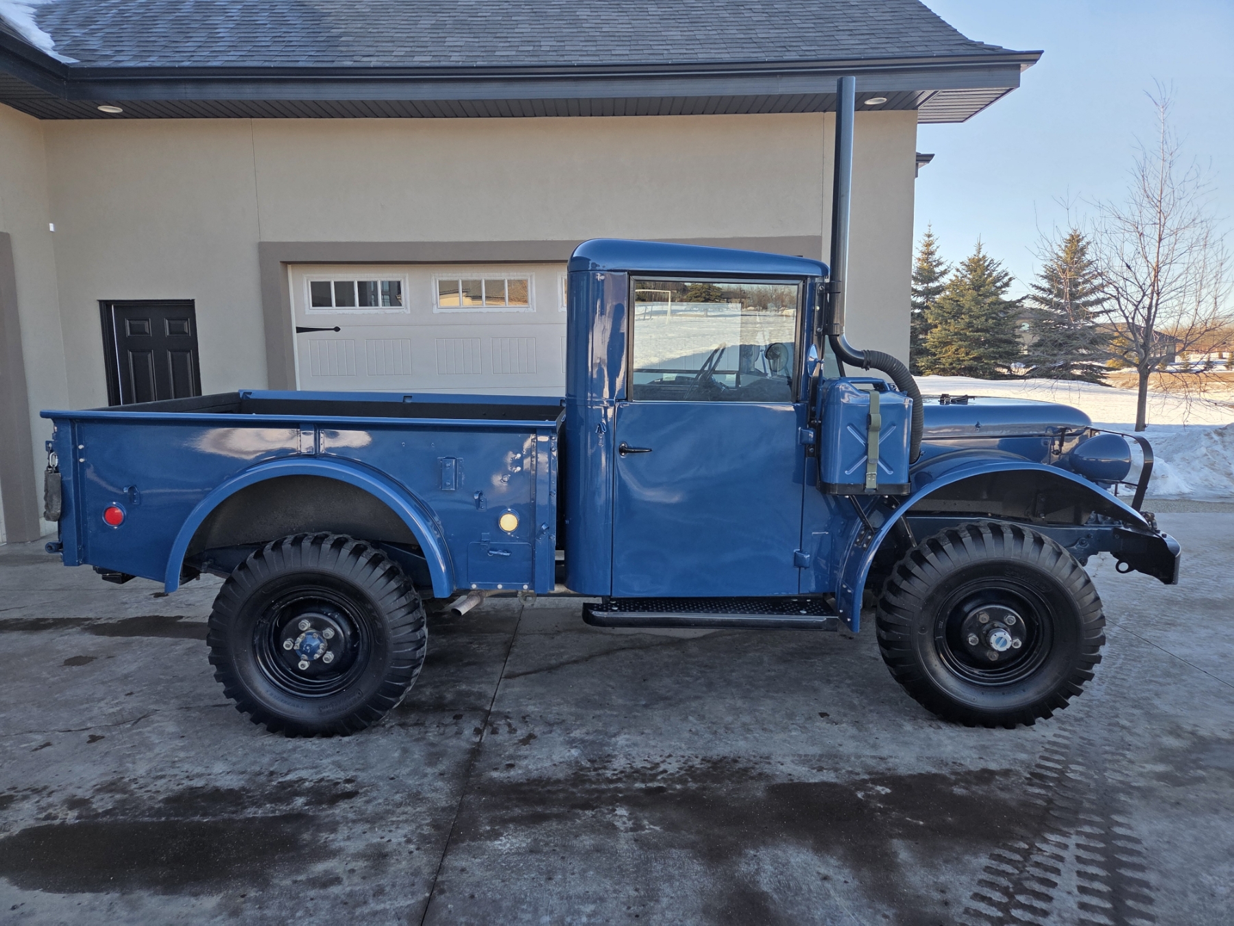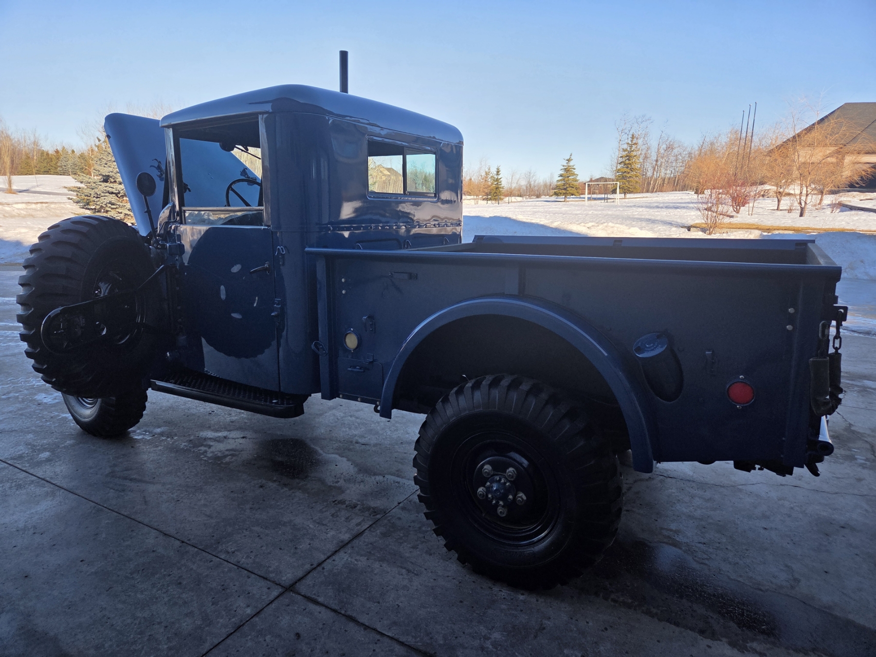 Meticulous restoration bringing this original M37 to better than new condition! All components have been reworked and operate like new, including original drivetrain (engine, transmission, transfer case & rear end, ALL rebuilt). The truck is completely rust free and has been professionally repainted to it's original & authentic Alaskan Military Ultramarine Blue. Some features include a 9000 lb. PTO-driven winch, an air intake snorkel, 2-speed transfer case, self-cleaning military grip tires, a key-operated power shut off switch, a sprayed-in box liner & fender inners, a driver's door mounted spare tire (complete with inside release mechanism), as well as a lugnut wrench & wheel chocks inside the box cubby.