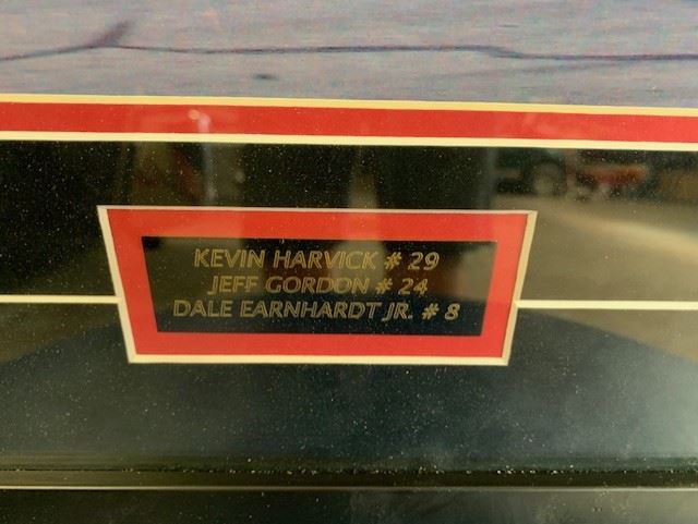 BEAUTIFULLY FRAMED RACING PICTURE OF KEVIN HARVICK #29, JEFF GORDON #24, DALE EARNHARDT JR #8