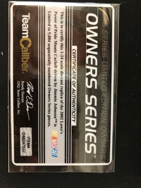 LIMITED EDITION AUTHENTIC RACING COLLECTABLE #48 JIMMIE JOHNSON 1:24 SCALE 2002 POWER OF PRIDE MONTE CARLO