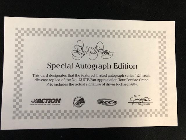 LIMITED EDITION AUTHENTIC RACING COLLECTABLE AUTOGRAPHED #43 RICHARD PETTY FAREWELL CAR 1:24 1992 GRAND PRIX COA INCLUDED
