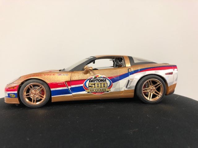 LIMITED EDITION AUTHENTIC RACING COLLECTABLE CELEBRATING 50 YEARS OF THE DAYTONA 500 1:24 SCALE STOCK CAR PLUS BONUS CORVETTE REPLICA CAR