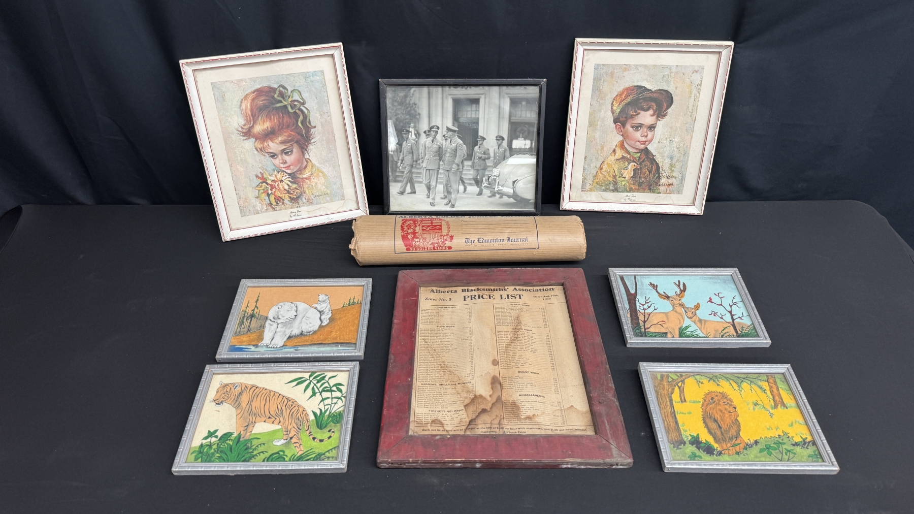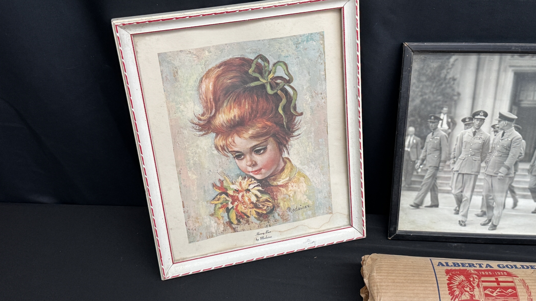 FRAMED PRINTS(MEDEIROS "HONEYBUN" & "HUCK FINN") & DOCUMENTS