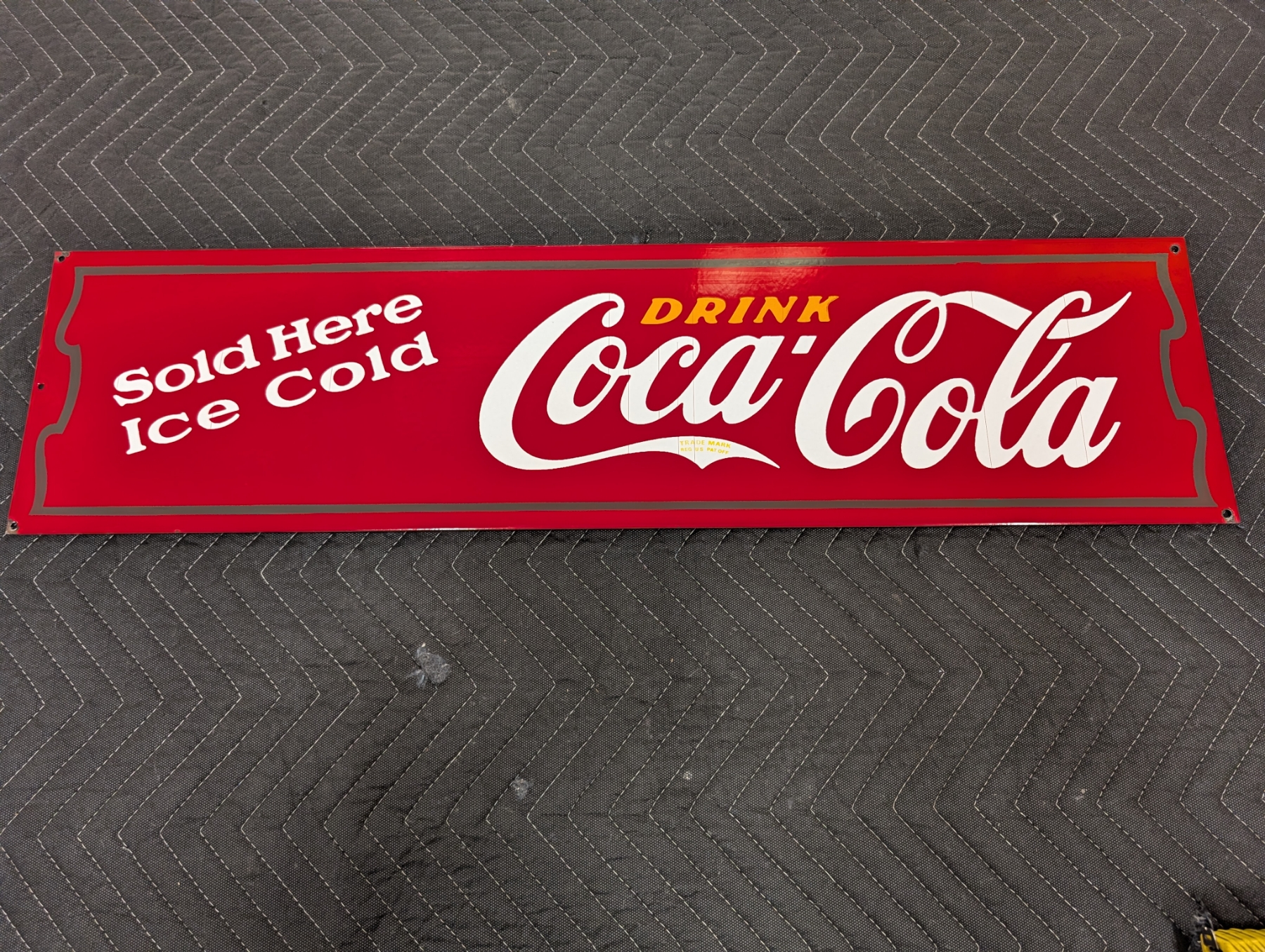 Heavy Porcelain Drink Coca Cola, Sold Here Ice Cold sign! Awesome colours and gloss! 33 inches by 18.5 inches!