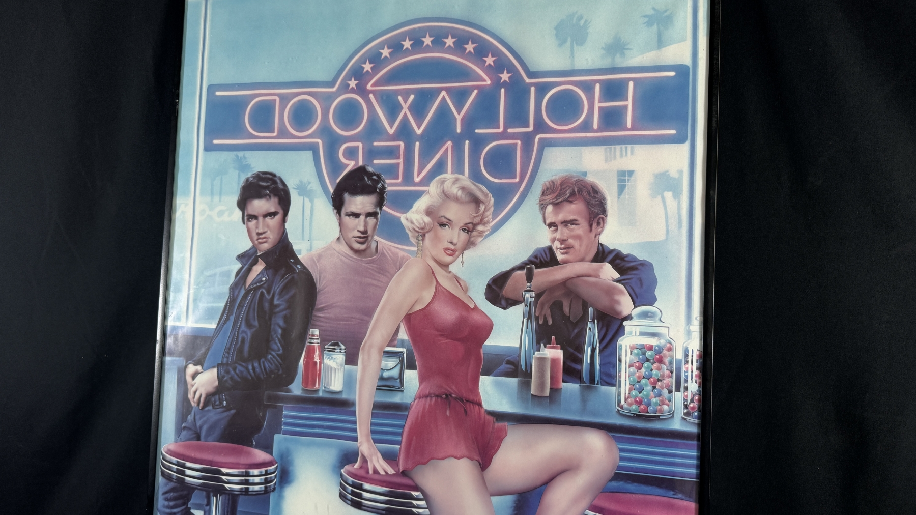 HOLLYWOOD DINER POSTER W/ MARILYN, ELVIS, JAMES DEAN & MARLON BRANDO 3FT X 2FT