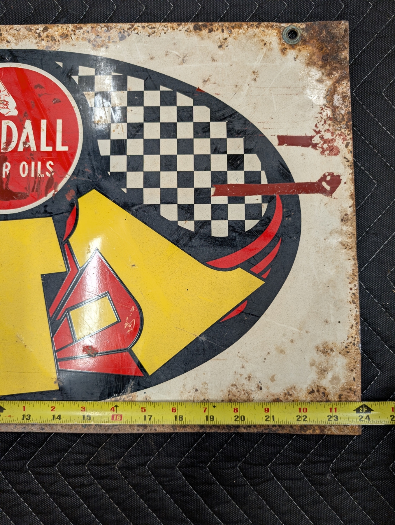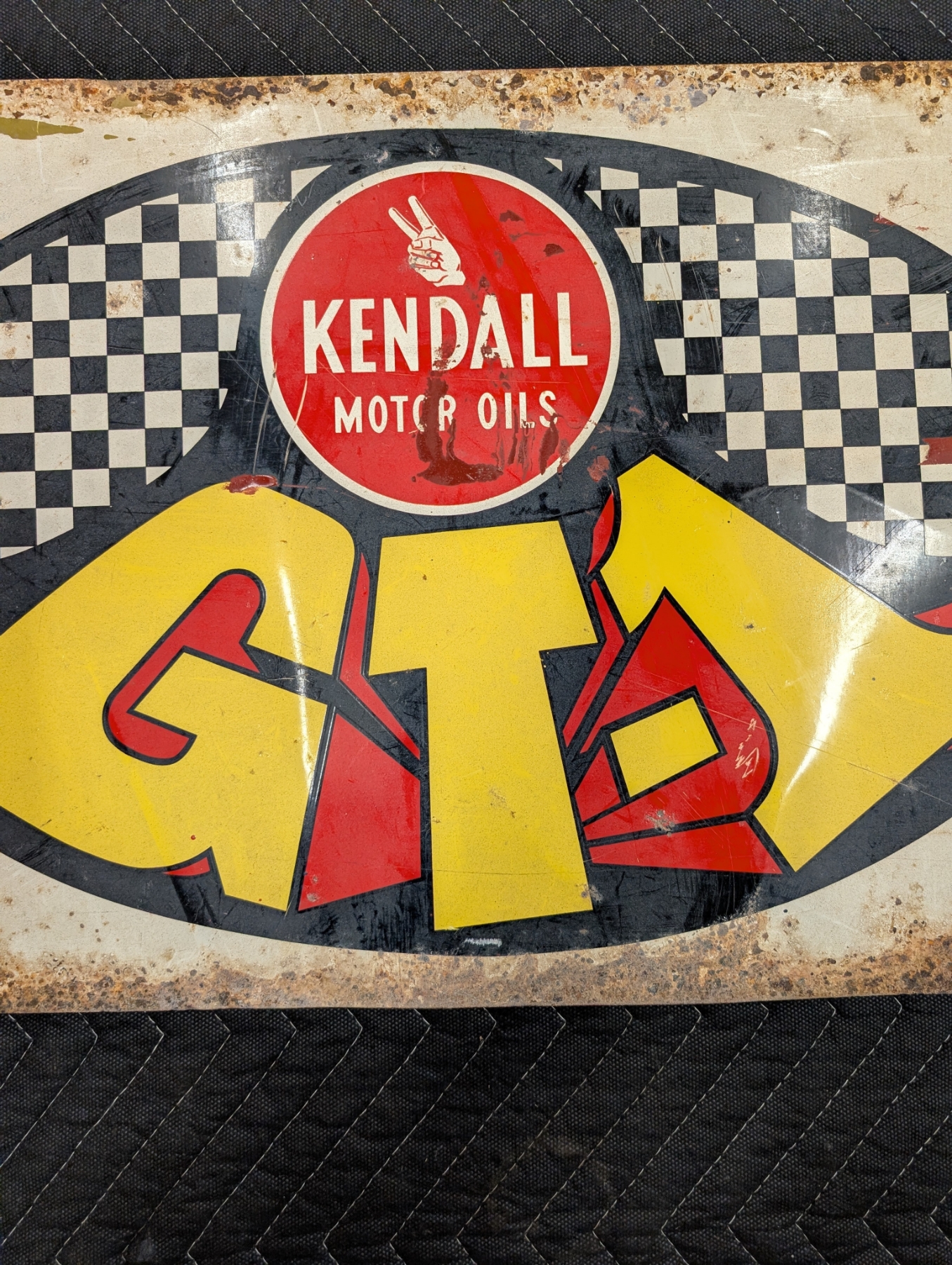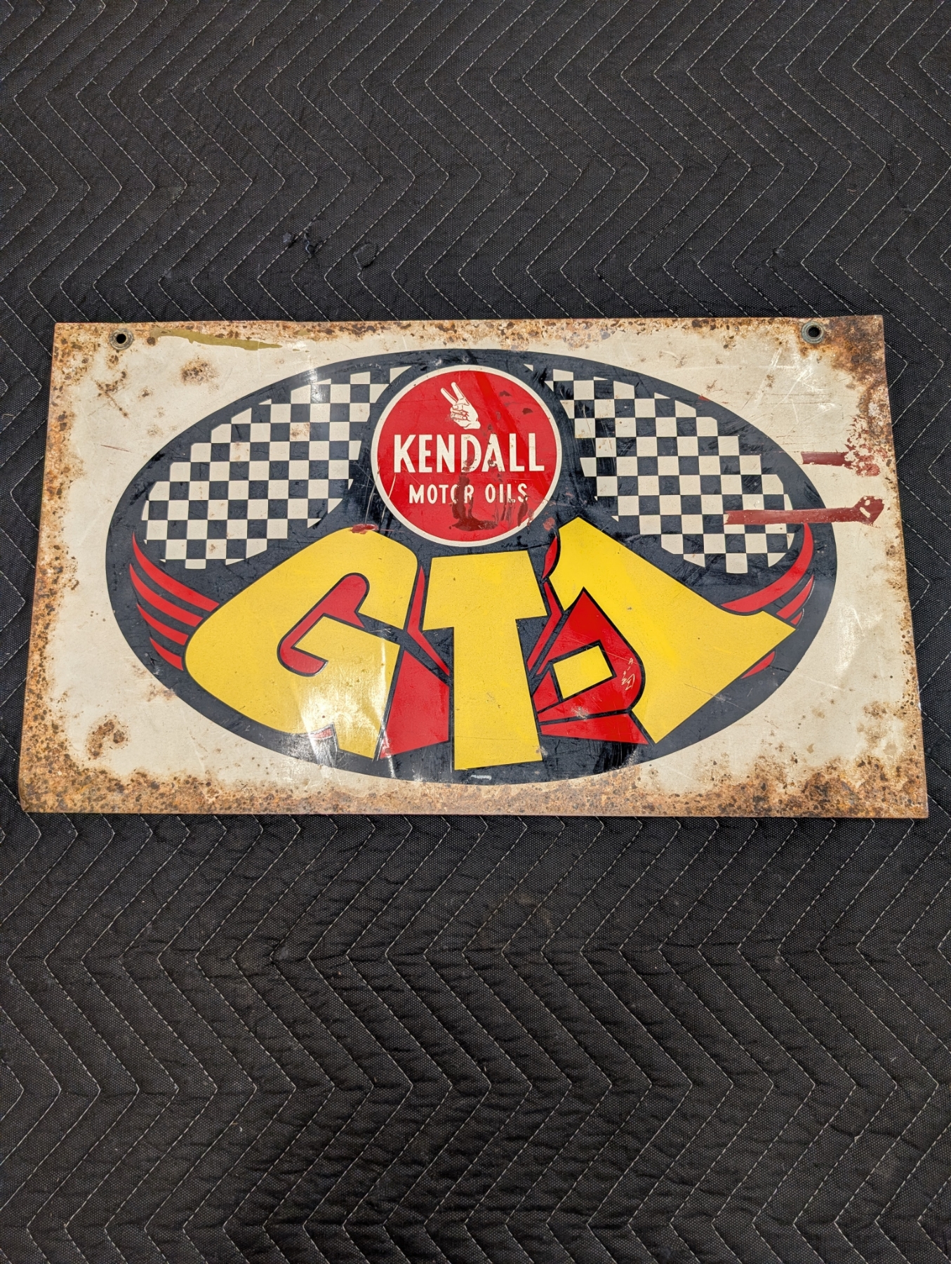 KENDALL GT-1 MOTOR OILS STATION DOUBLE SIDED MUSCLE CAR ERA SIGN