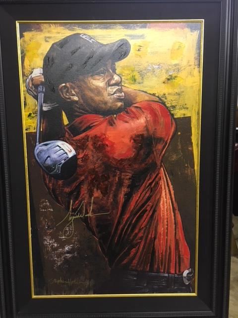 LIMITED EDITION STEPHEN HOLLAND PAINTING - SIGNED TIGER WOODS