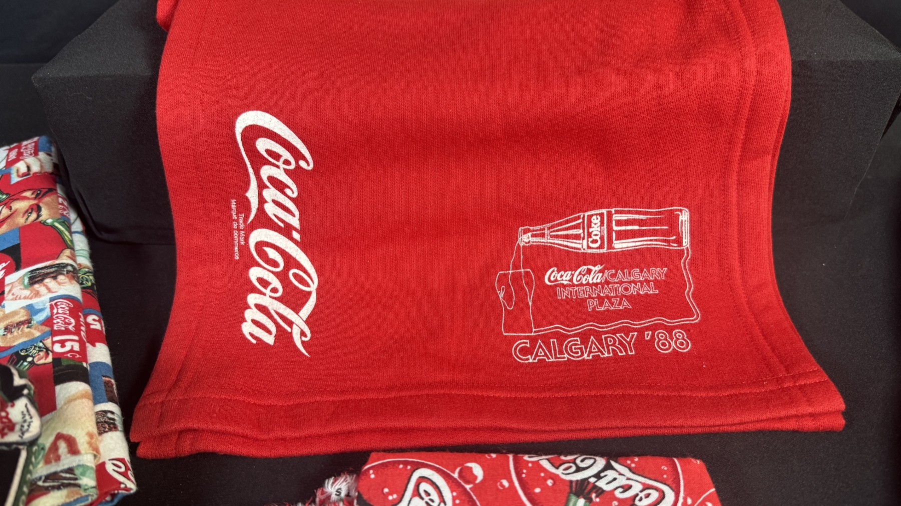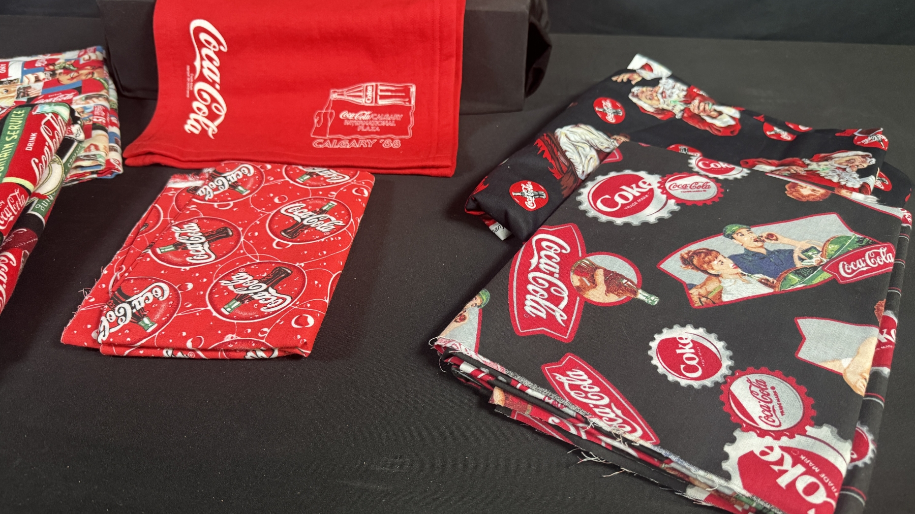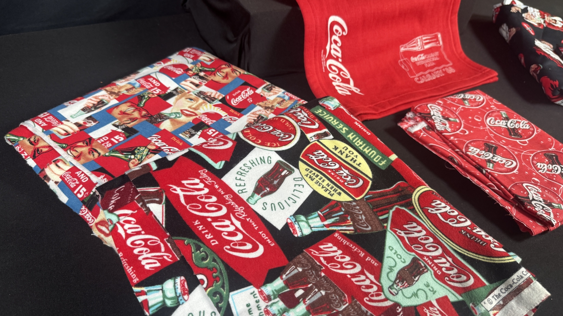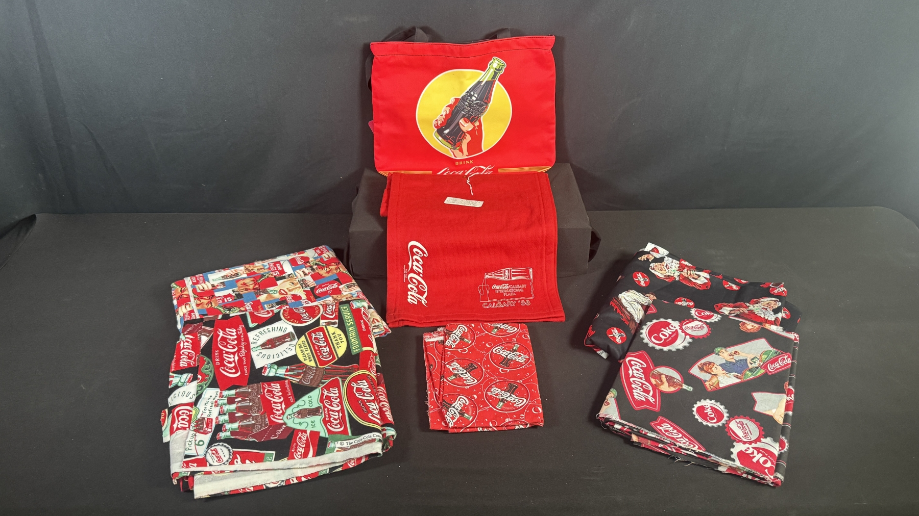LOT OF COCA-COLA FABRIC & TEXTILES, TOTE BAG, & CALGARY '88 SCARF