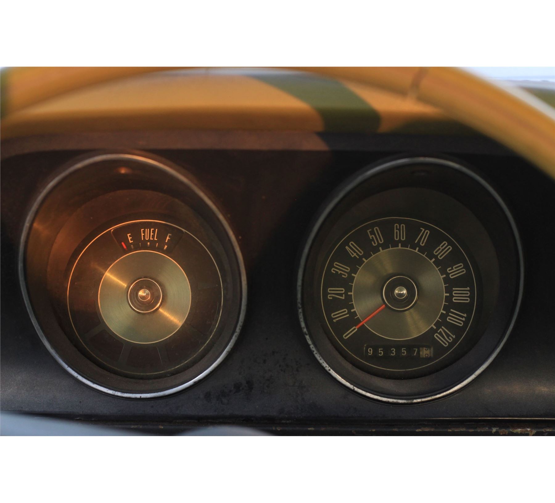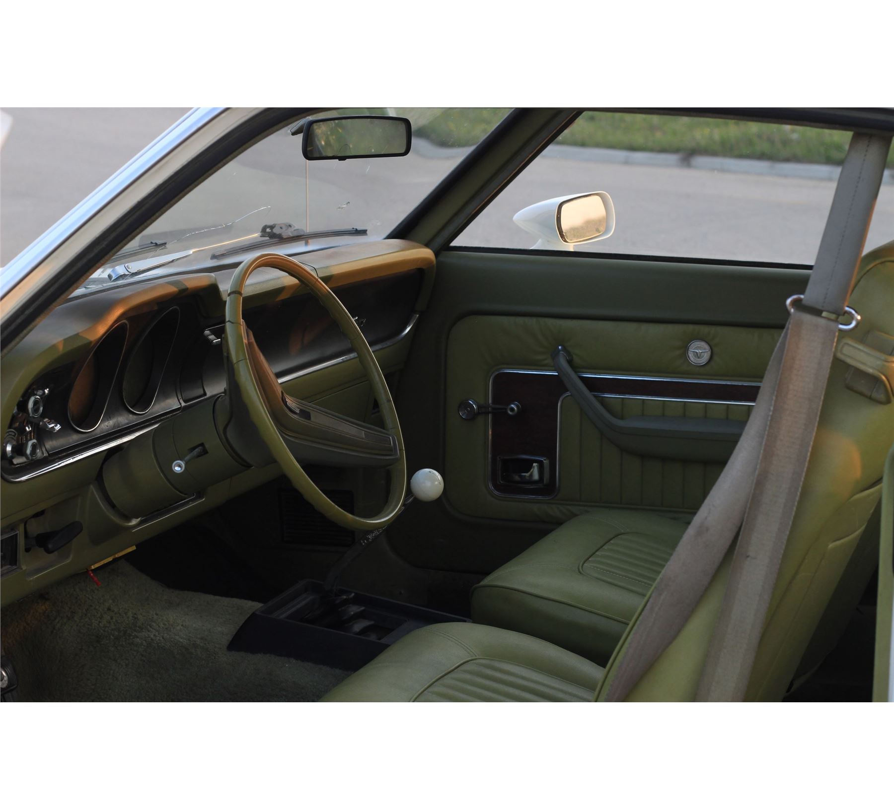 ALL ORIGINAL AVOCADO COLOR INTERIOR, WITH NEWLY REUPHOLSTERED FRONT SEATS AND LOWER 1/2 REAR SEAT