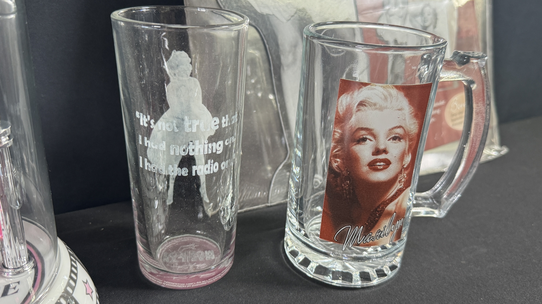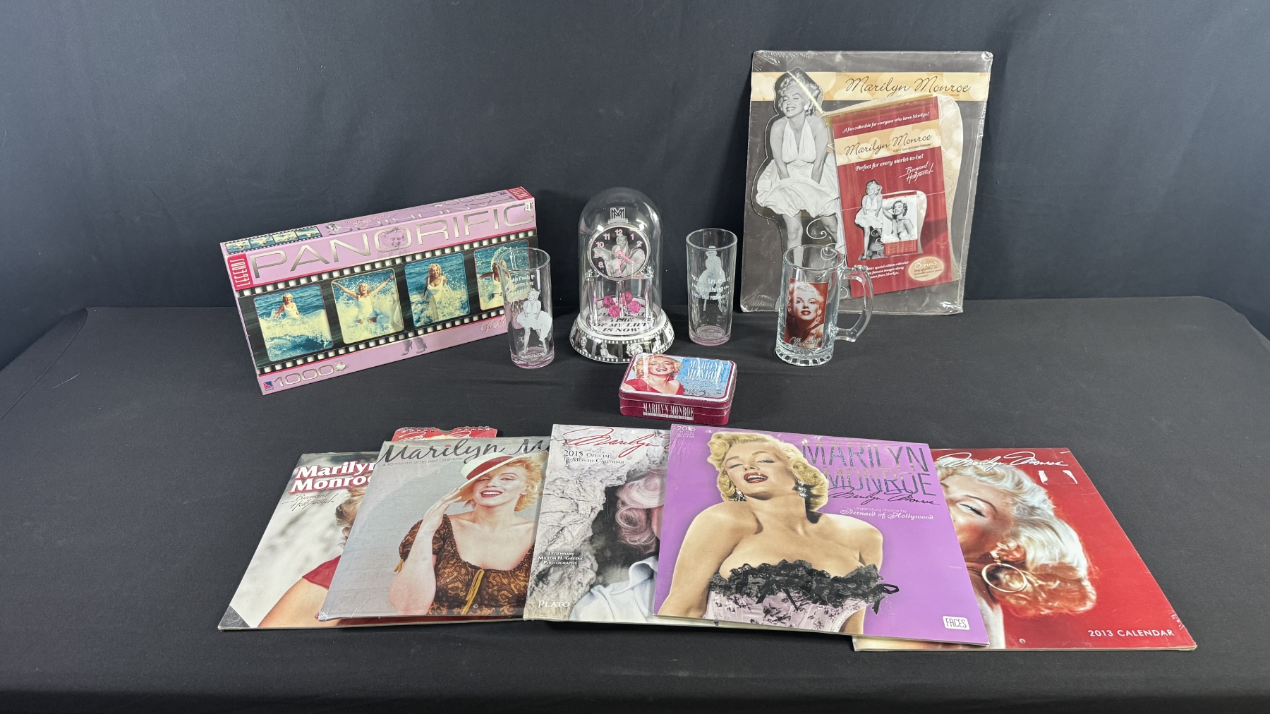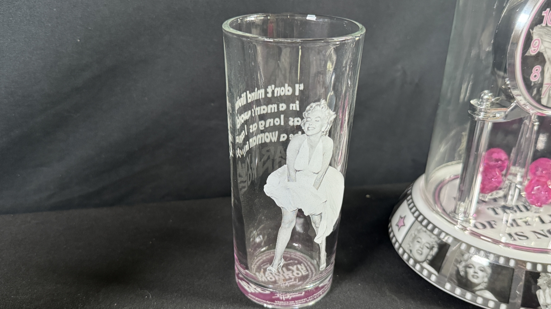 MARILYN COLLECTORS LOT - WALL ART, CLOCK, GLASSWARE & CALENDARS