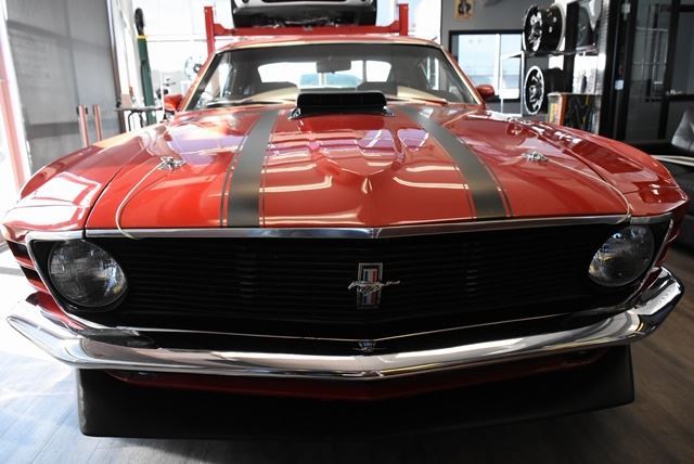 Custom Painted 1970 Ford Mustang Red with several coats of Paint and Clear. Custom Boss Reflective Black GraphicsAll Chrome has been replaced with new. New Chrome Bumpers, Emblems, Front Grill, Tail Light Bezels and Gas Cap351 cid V8 Cleveland. Completely Rebuilt to Stock Specs. Demon 650cfm Carb. March V Belt Pulley System. Ford Finned Valve Covers. Shaker Hood Scoop IntakeNew Date Correct 4 Speed Manual Transmission. Hurst Floor ShifterNew Griffin Aluminum Radiator 16 inch Electric Hi Flow Fan. Polished Aluminum Over Flow. New Black Rubber HosesNew Master Mufflers. New Stock Exhaust Pipe