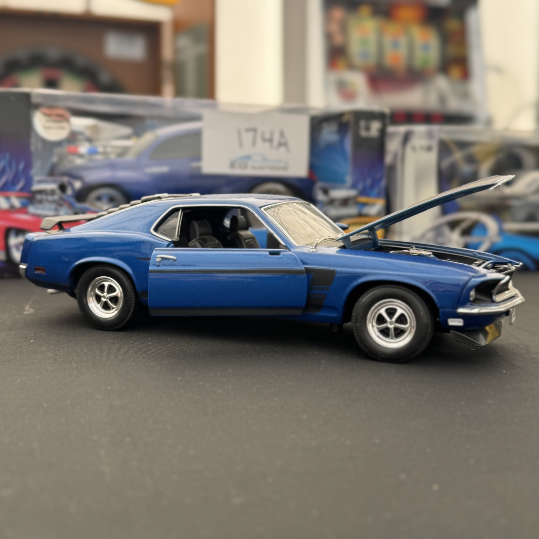 MUSCLE MACHINES 1:18 SCALE '00 PT CRUISER DIECAST & BLUE '69 FORD MUSTANG DIECAST