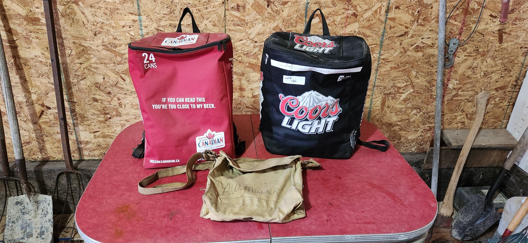 1 Molson canadian and 1 Coors light 24 can holder backpack, and 1 cloth carry bag