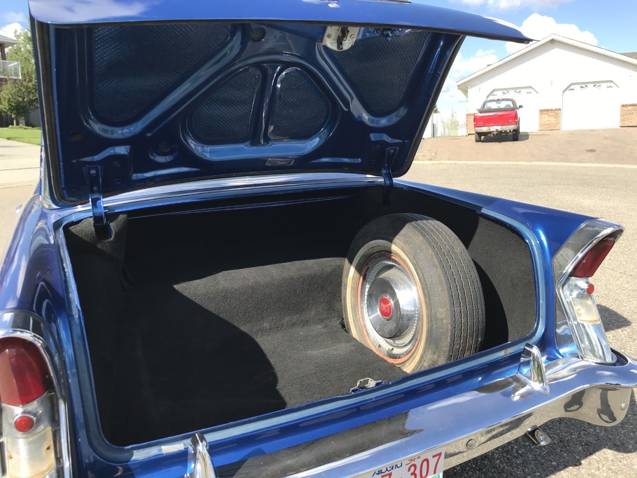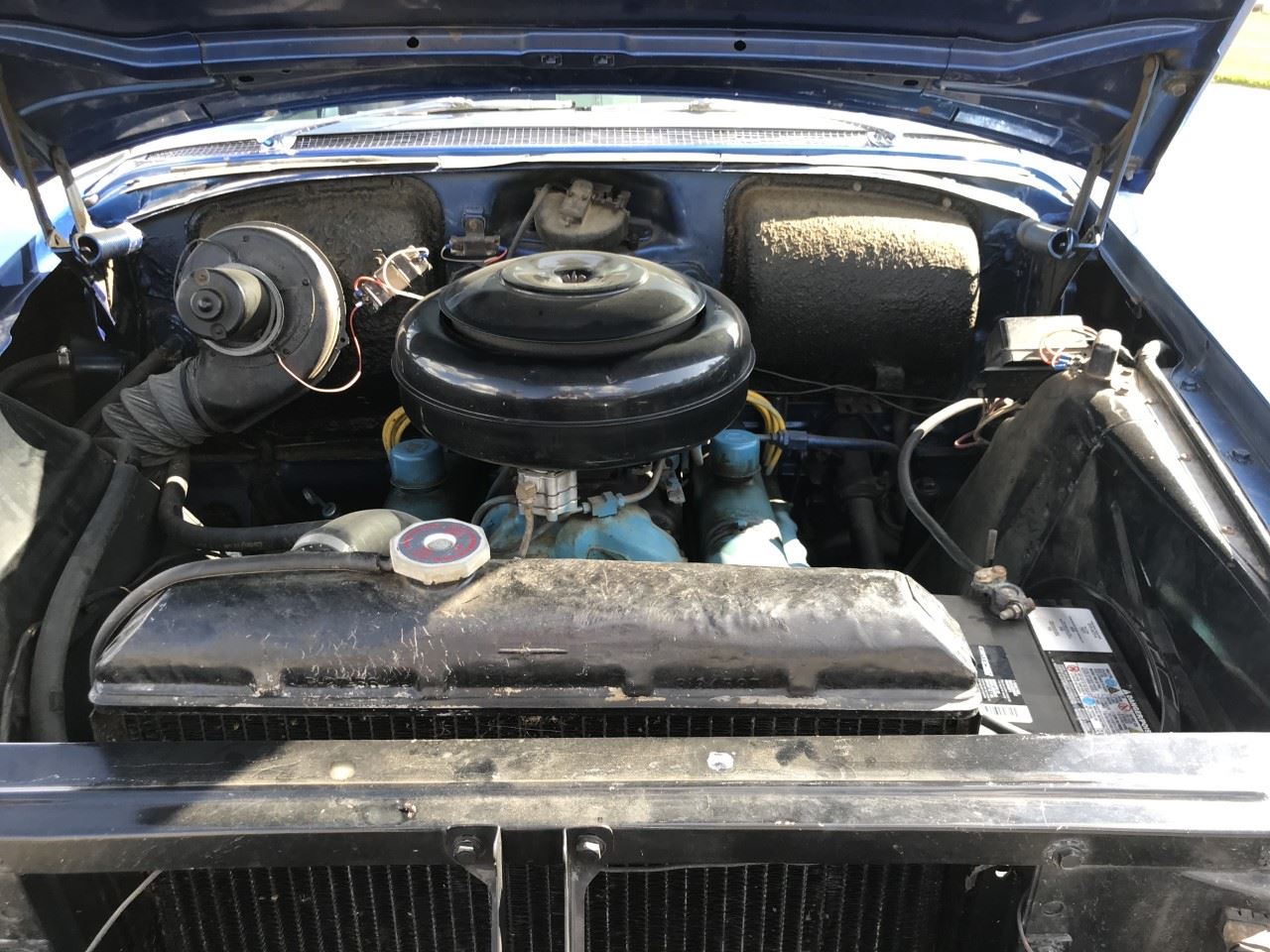 The 322 Nailhead V8 engine is original with a 2-speed automatic original transmission with standard differential. Engine comp ratio is 8.9:1 stock. Powertrain is all original. Engine compartment is nicely painted and detailed. The chrome and grill is original and in excellent condition. The original wheel discs are on the car. The tires and tread are in very good condition and were recently purchased.