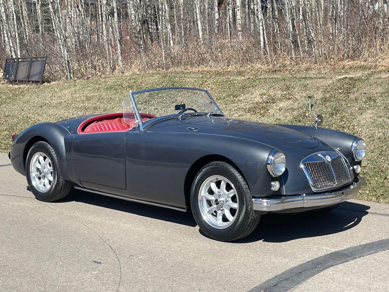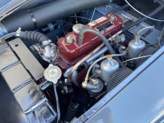 FRESH RESTORATION ON AN INCONIC MGA ROADSTER. COMPLETE BODY OFF RESTOR AND BEAUTIFULLY FINISHED IN CLASSIC DEEP SEA SILVER METALLIC EXTERIOR PAINT COMPLIMENTED WITH RED LEATHER BUCKET SEATS INTERIOR. AWARDED FOR ITS BRILLIANT DESIGN THE 57 MGA ROADSTERS ARE SKY ROCKETING IN VALUE. THIS EXAMPLE HAS A REBUILT DRIVETRAIN, ALL NEW TRIM, CHROME AND WHEELS. SPECTACULAR ENGINE BAY DETAIL ON ITS ORIGINAL 1489CC 4 CYLINDER ENGINE AND 4 SPEED MANULA GEAR BOX