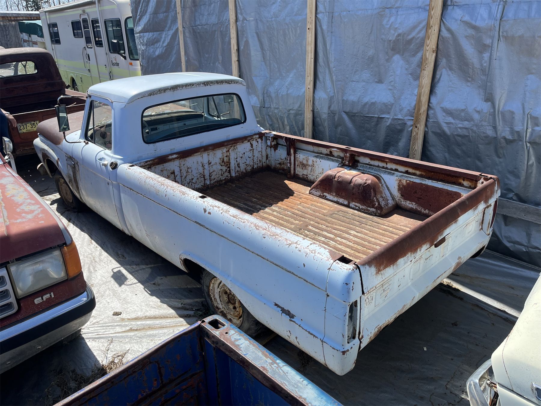 1965 Ford F-100, Seized inline 6 cylinder, manual transmission, fair body, great patina.