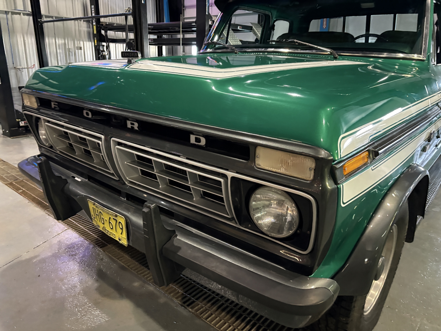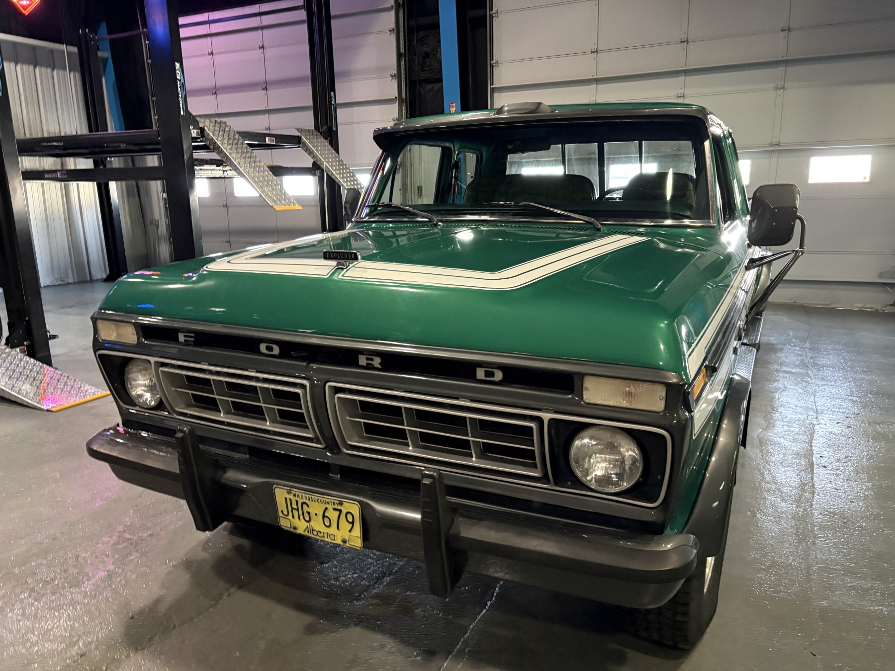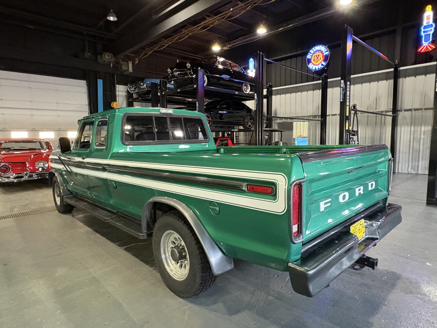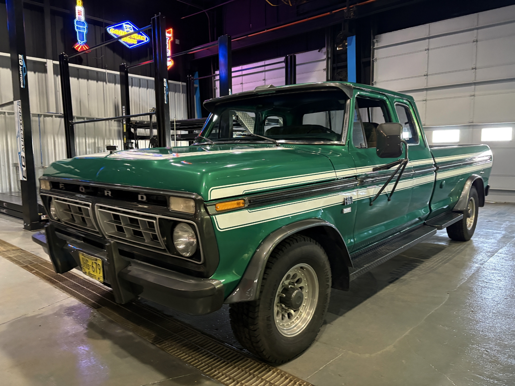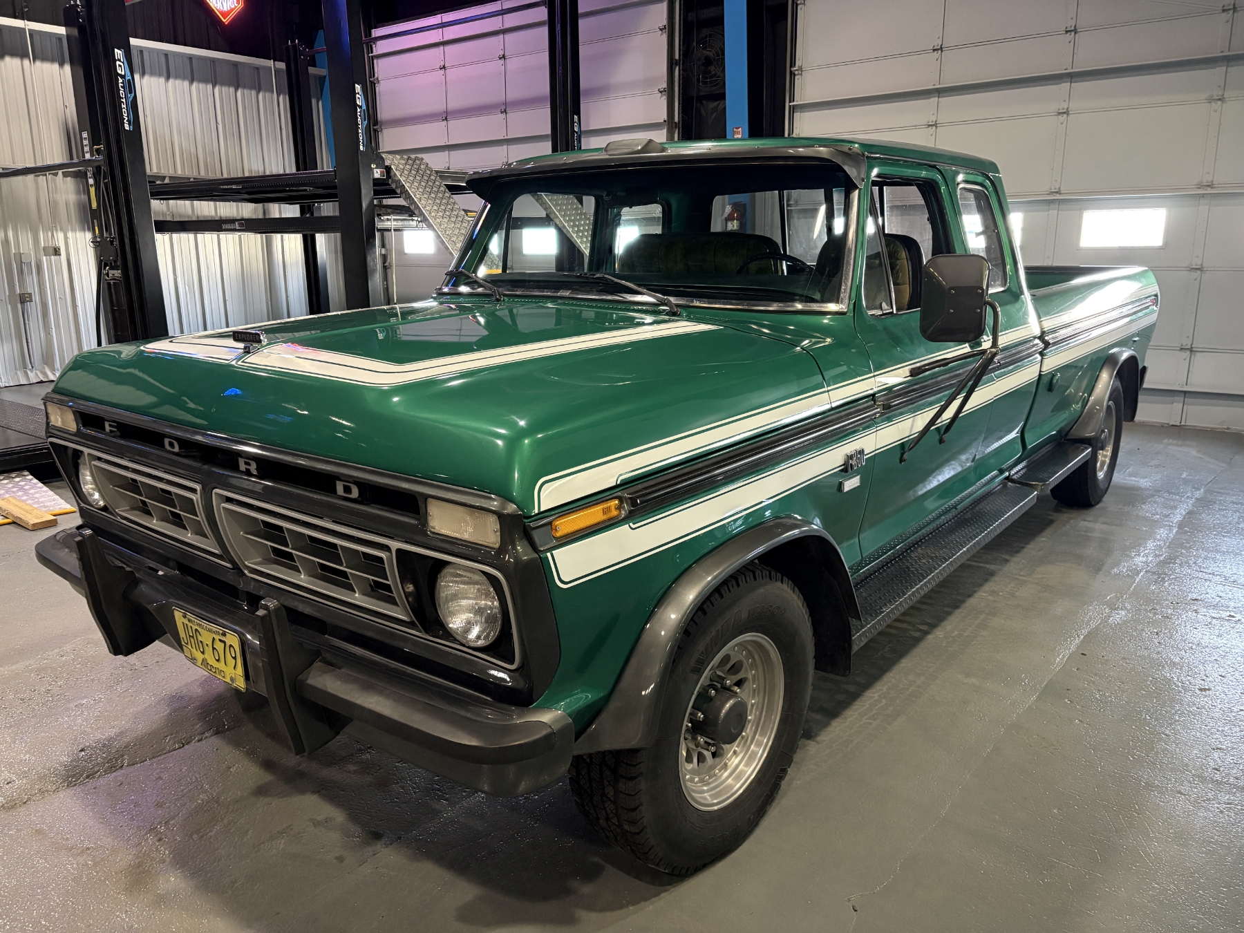 Incredibly rare highly option Ford F250 one family owned since New purchased July 26, 1976 in Alberta Canada. Only 85,400 original miles. Still retains the factory 460 4BBL V8 big block engine with its factory automatic transmission. The family has kept the vehicle indoors in a climate control facility and has only been used in the summer. Has been restored with all new Body and Paint in 2020 including a completely coded frame, including the underside of the Cab in the box. The box has been spray lined with matching green exterior. Had the third seat in the back of the super cab. dual tanks. Factory white graphics on the exterior. The front seat has been restored to new condition with its factory, green vinyl and houndstooth inserts. Alberta registered selling no reserve.