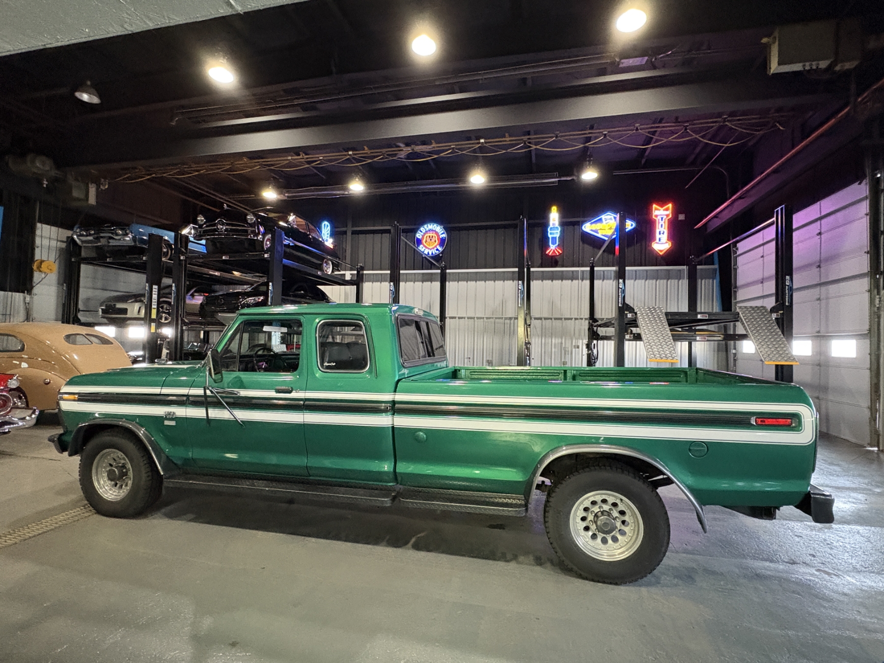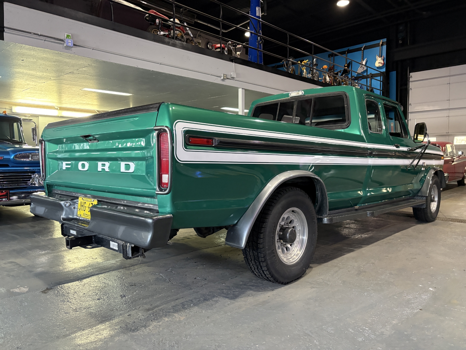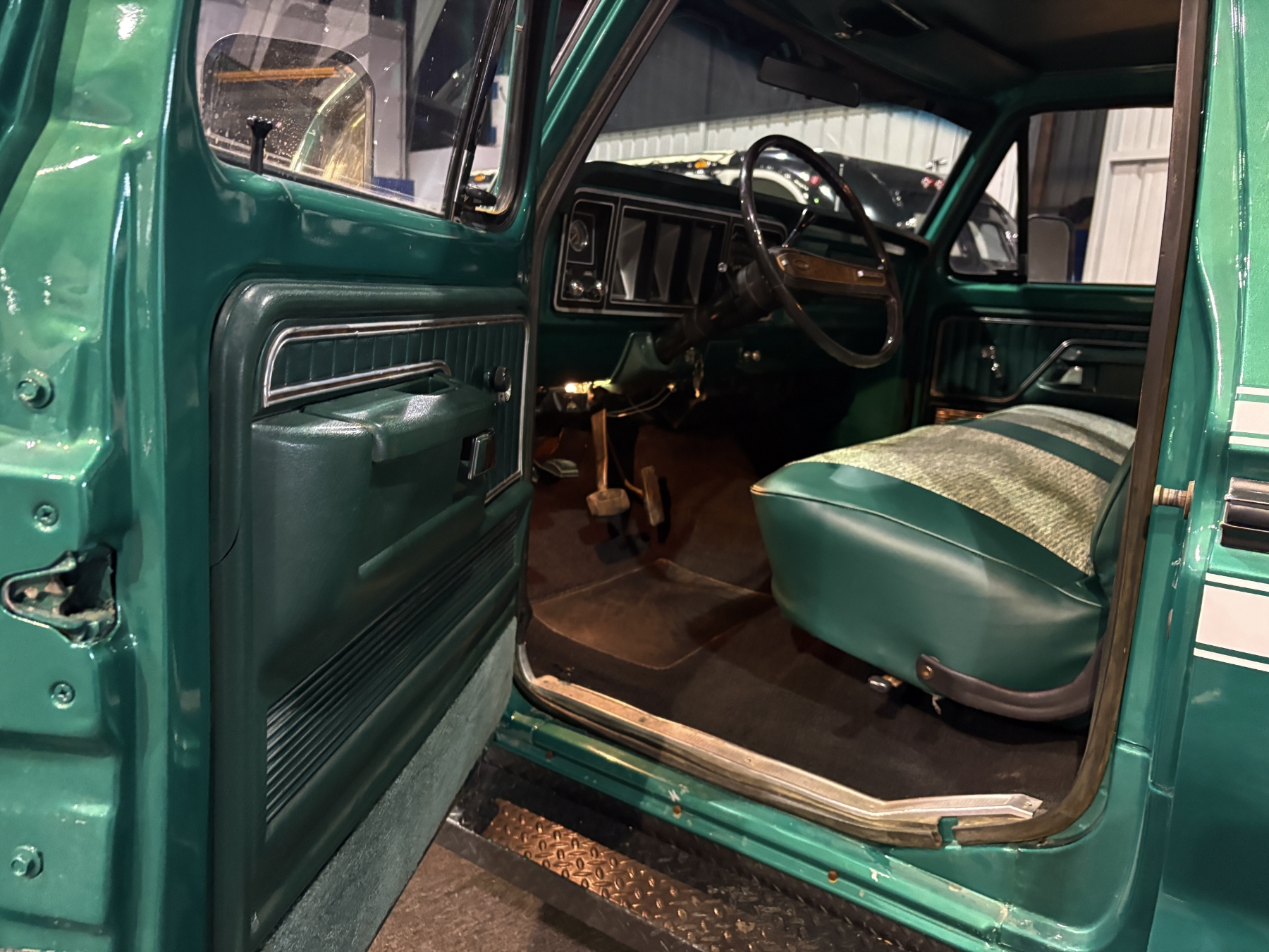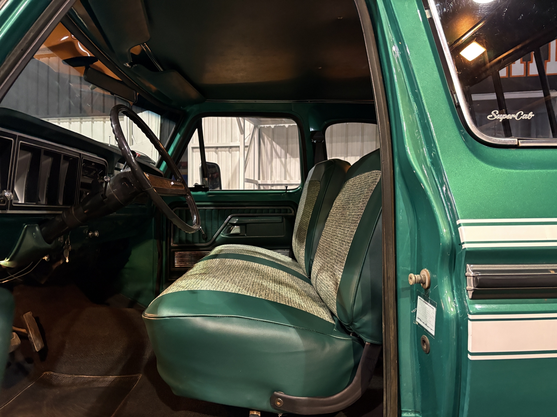 Incredibly rare highly option Ford F250 one family owned since New purchased July 26, 1976 in Alberta Canada. Only 85,400 original miles. Still retains the factory 460 4BBL V8 big block engine with its factory automatic transmission. The family has kept the vehicle indoors in a climate control facility and has only been used in the summer. Has been restored with all new Body and Paint in 2020 including a completely coded frame, including the underside of the Cab in the box. The box has been spray lined with matching green exterior. Had the third seat in the back of the super cab. dual tanks. Factory white graphics on the exterior. The front seat has been restored to new condition with its factory, green vinyl and houndstooth inserts. Alberta registered selling no reserve.