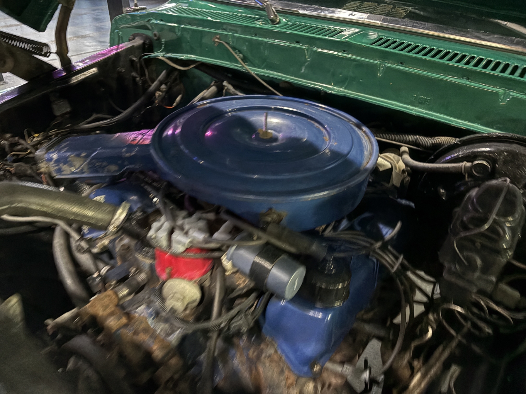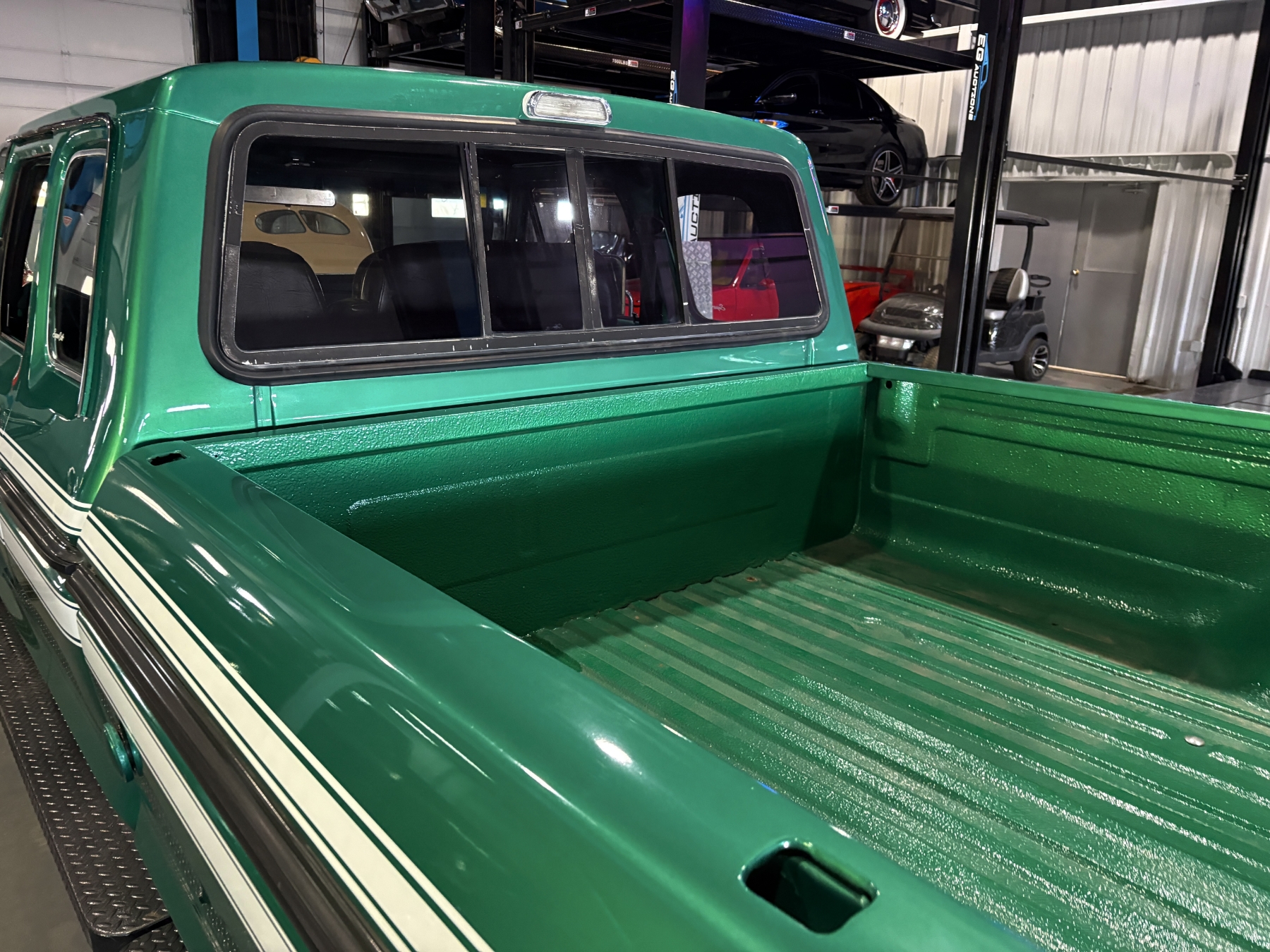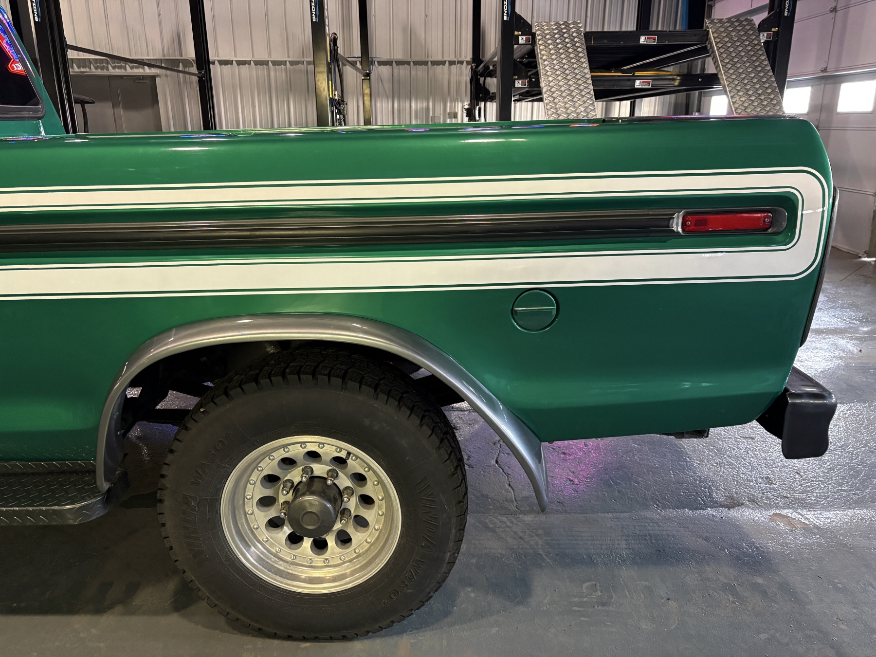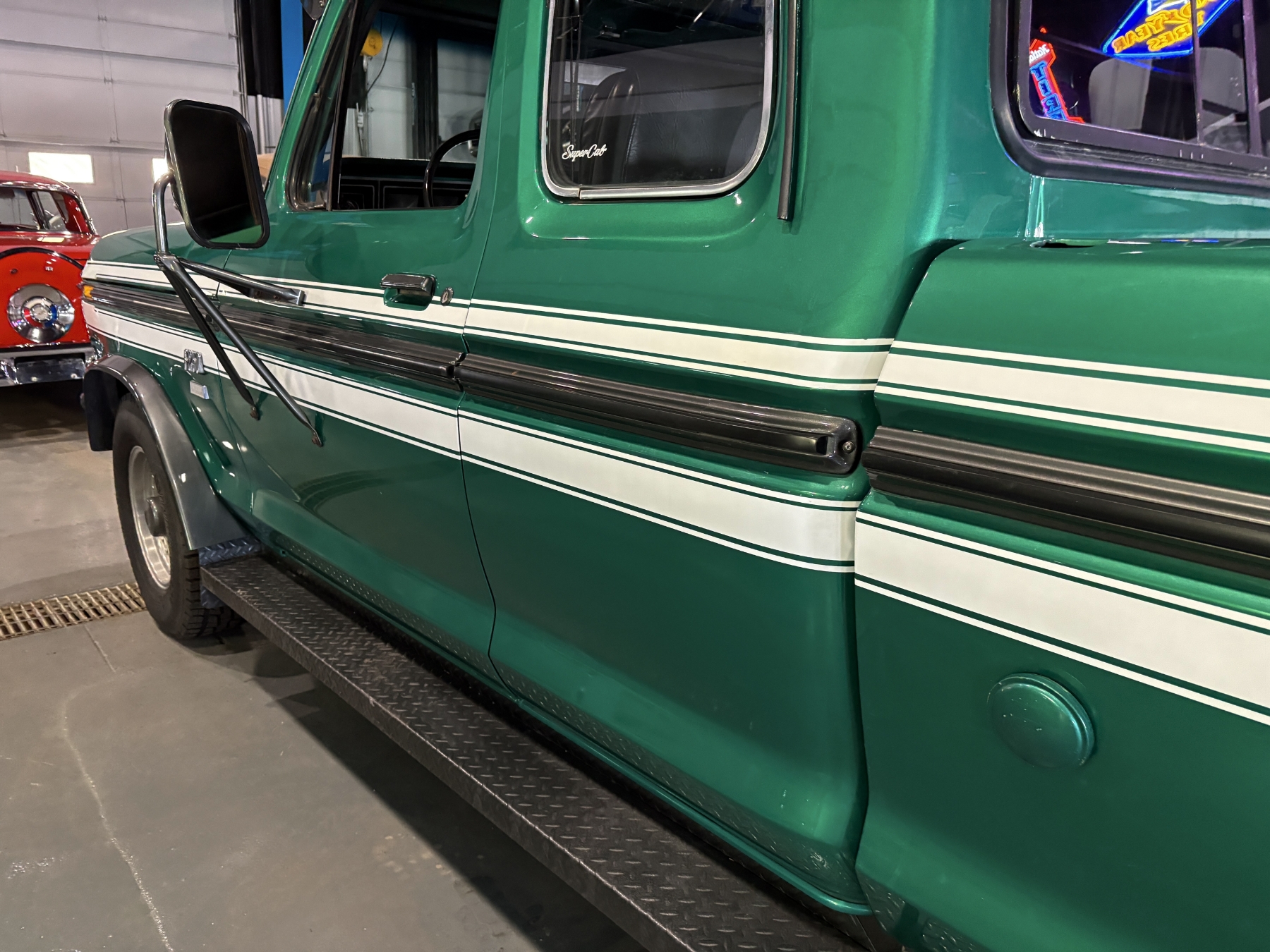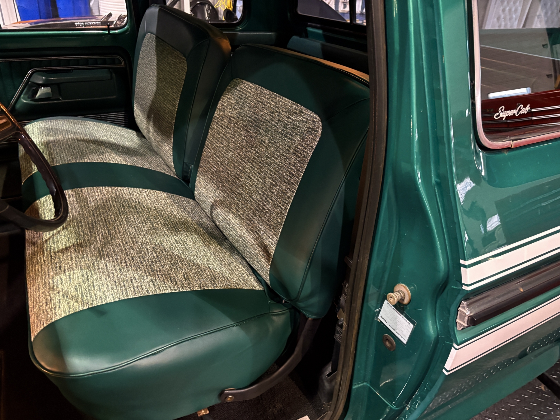 Incredibly rare highly option Ford F250 one family owned since New purchased July 26, 1976 in Alberta Canada. Only 85,400 original miles. Still retains the factory 460 4BBL V8 big block engine with its factory automatic transmission. The family has kept the vehicle indoors in a climate control facility and has only been used in the summer. Has been restored with all new Body and Paint in 2020 including a completely coded frame, including the underside of the Cab in the box. The box has been spray lined with matching green exterior. Had the third seat in the back of the super cab. dual tanks. Factory white graphics on the exterior. The front seat has been restored to new condition with its factory, green vinyl and houndstooth inserts. Alberta registered selling no reserve.