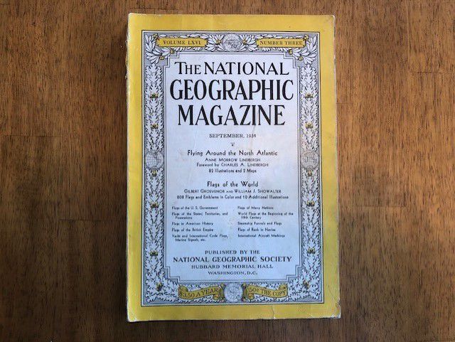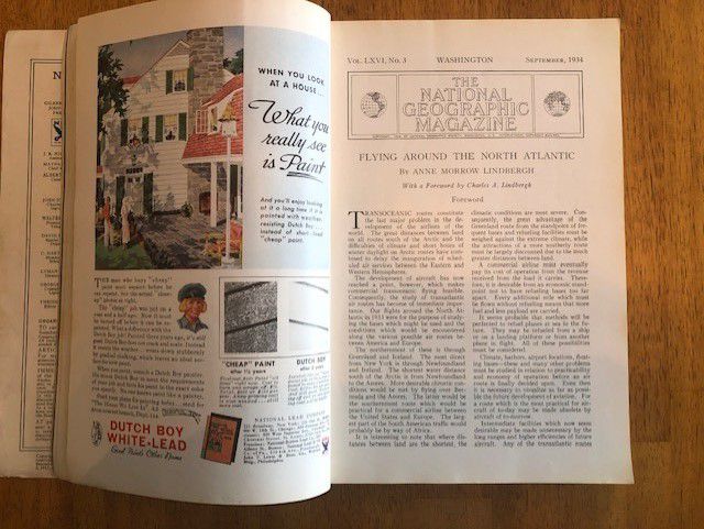 NO RESERVE COLLECTIBLE SET OF 1930'S NATIONAL GEOGRAPHIC MAGAZINES INCLUDING A PIECE BY CHARLES LINDBERGH SEPT 1934