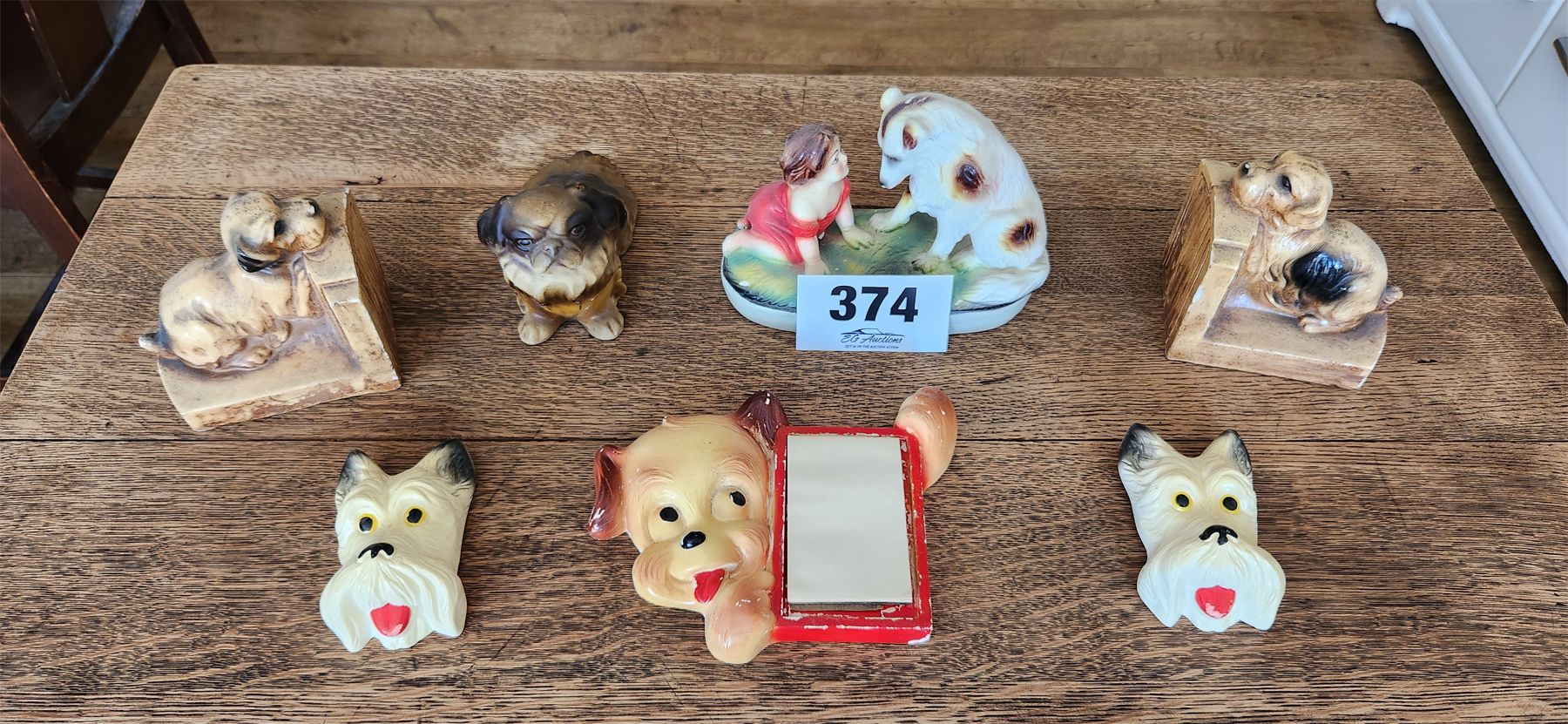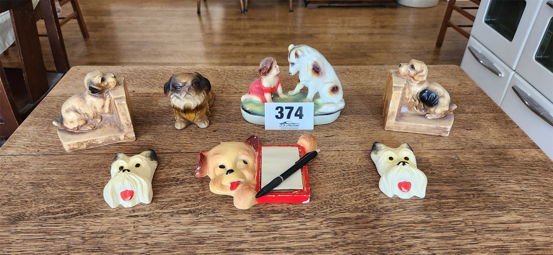 Collection of chalk dogs, bookends, wall hangings , note holder