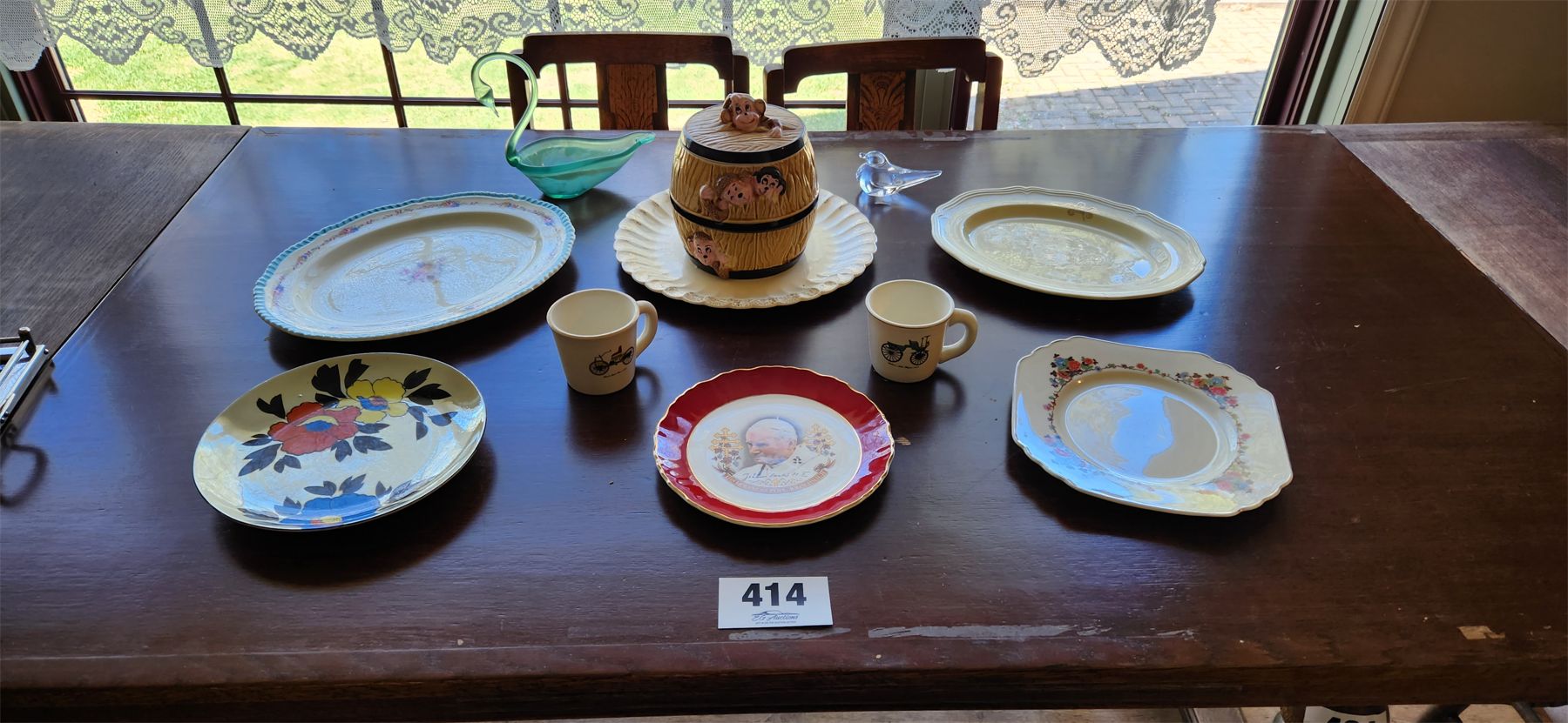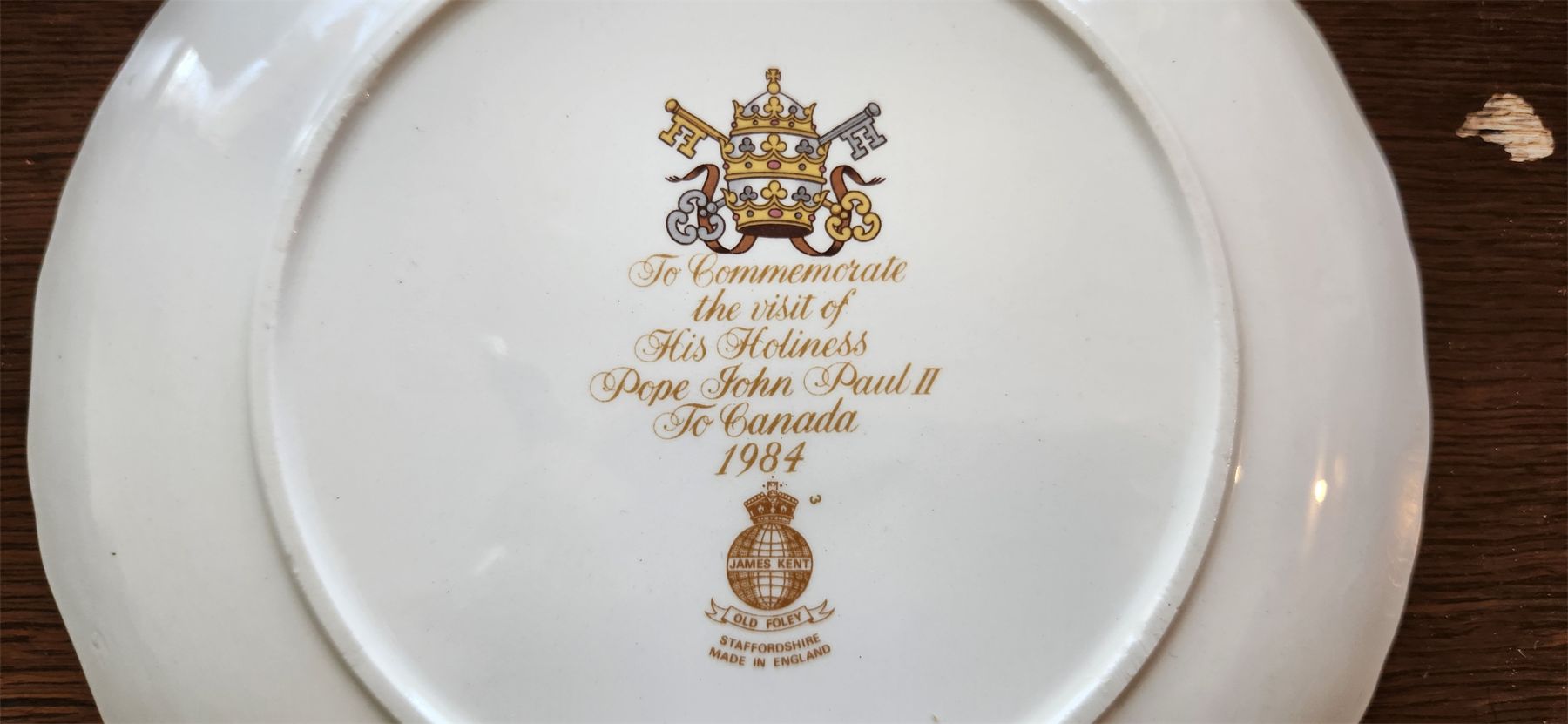 Collection of serving plates, cookie jar and commemorative plate of visit from Pope John Paul II to Canada 1984