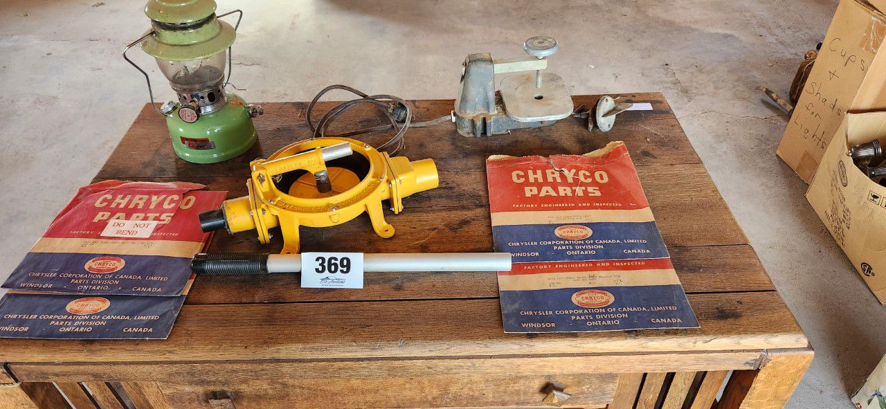 Collection of vintage chryco shims, Dart union water pump guzzler 600, 1 gasoline lanter