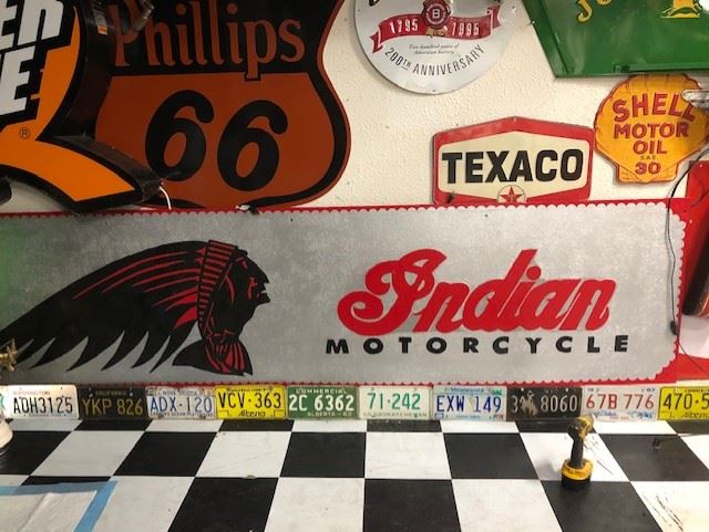 NO RESERVE CUSTOM EXTRA LARGE STEEL INDIAN MOTORCYCLE SIGN ONE OF A KIND