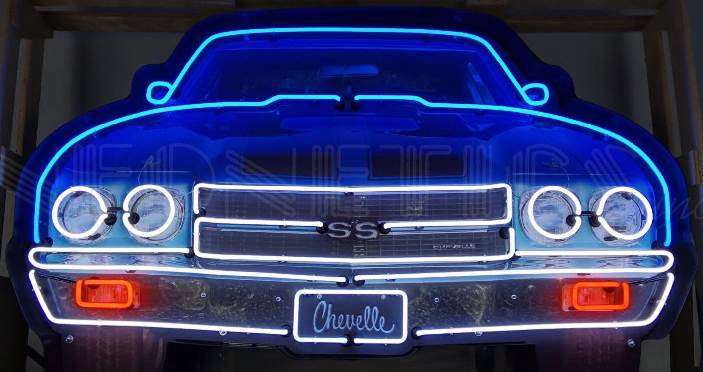NO RESERVE HUGE CHEVELLE GRILL NEON SIGN IN STEEL CAN