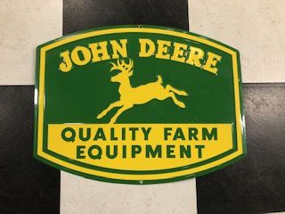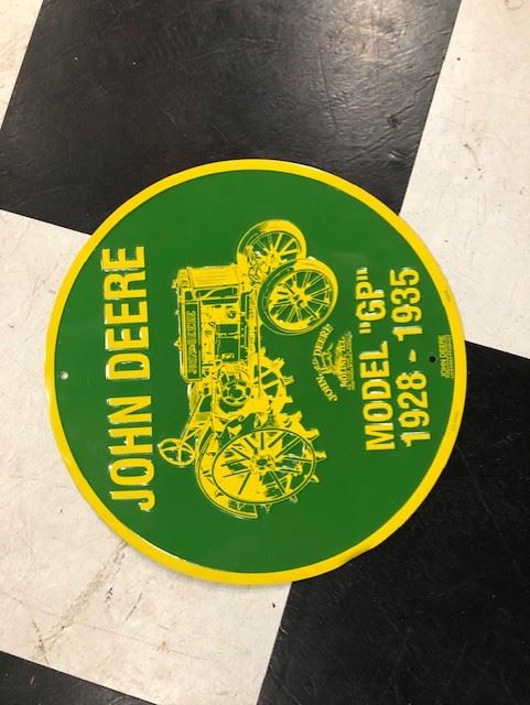 NO RESERVE JOHN DEERE MODEL GP SIGN AND FARM EQUIPMENT SIGN SELLING AS ONE LOT