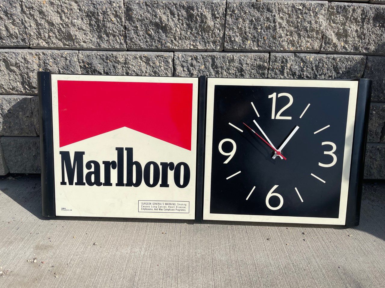 Rarely seen 1970s Marlboro clock. Great display piece in very good original condition nice graphics.