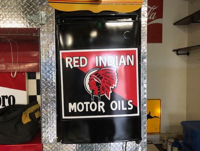 NO RESERVE RED INDIAN MOTOR OILS MINI CUSTOM FRIDGE