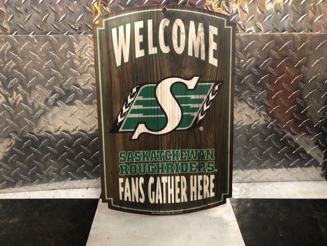 NO RESERVE SASKATCHEWAN ROUGHRIDER FANS GATHER HERE WOODEN SIGN