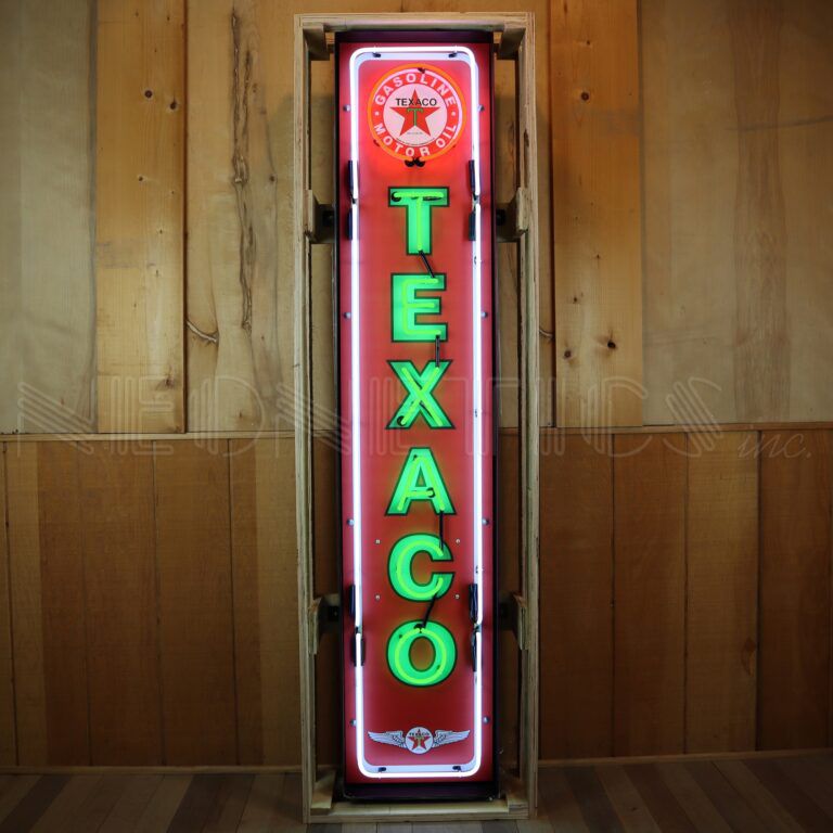 TEXACO VERTICAL NEON SIGN IN STEEL CAN