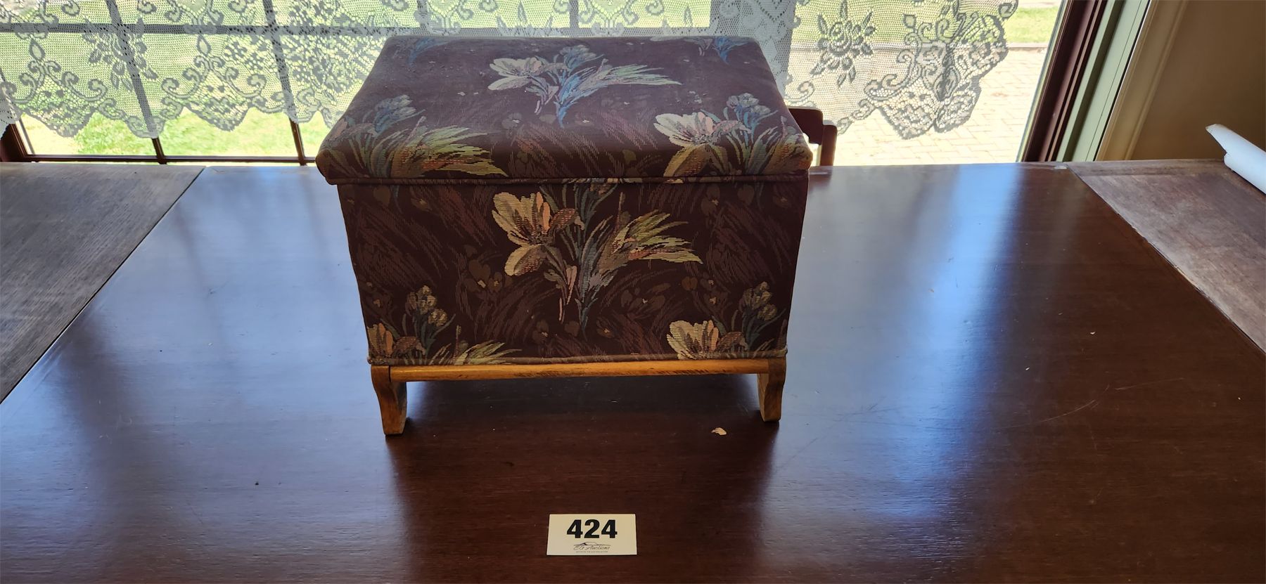 Vintage cloth covered footstool / storage