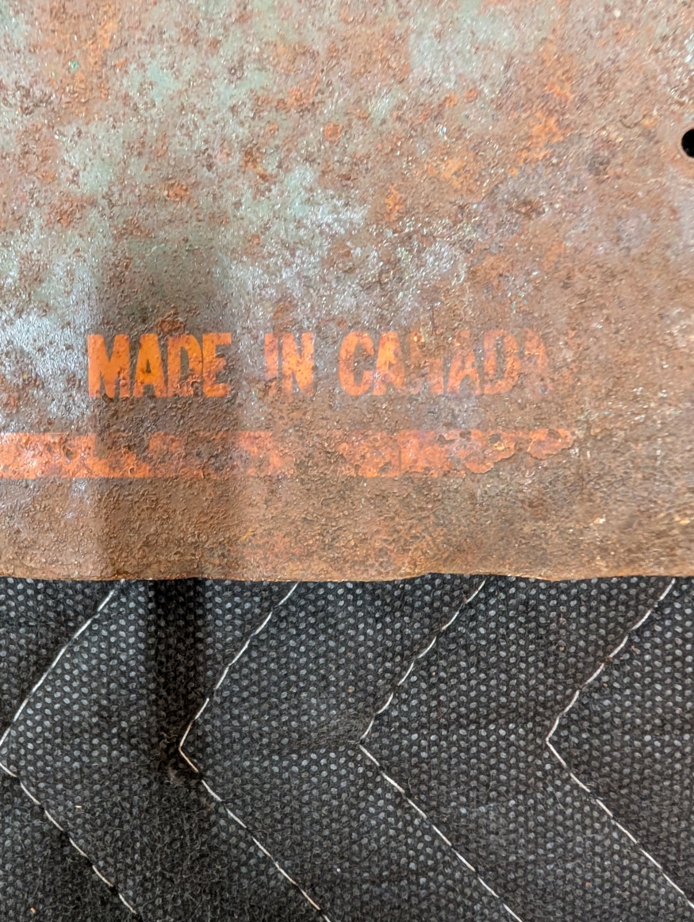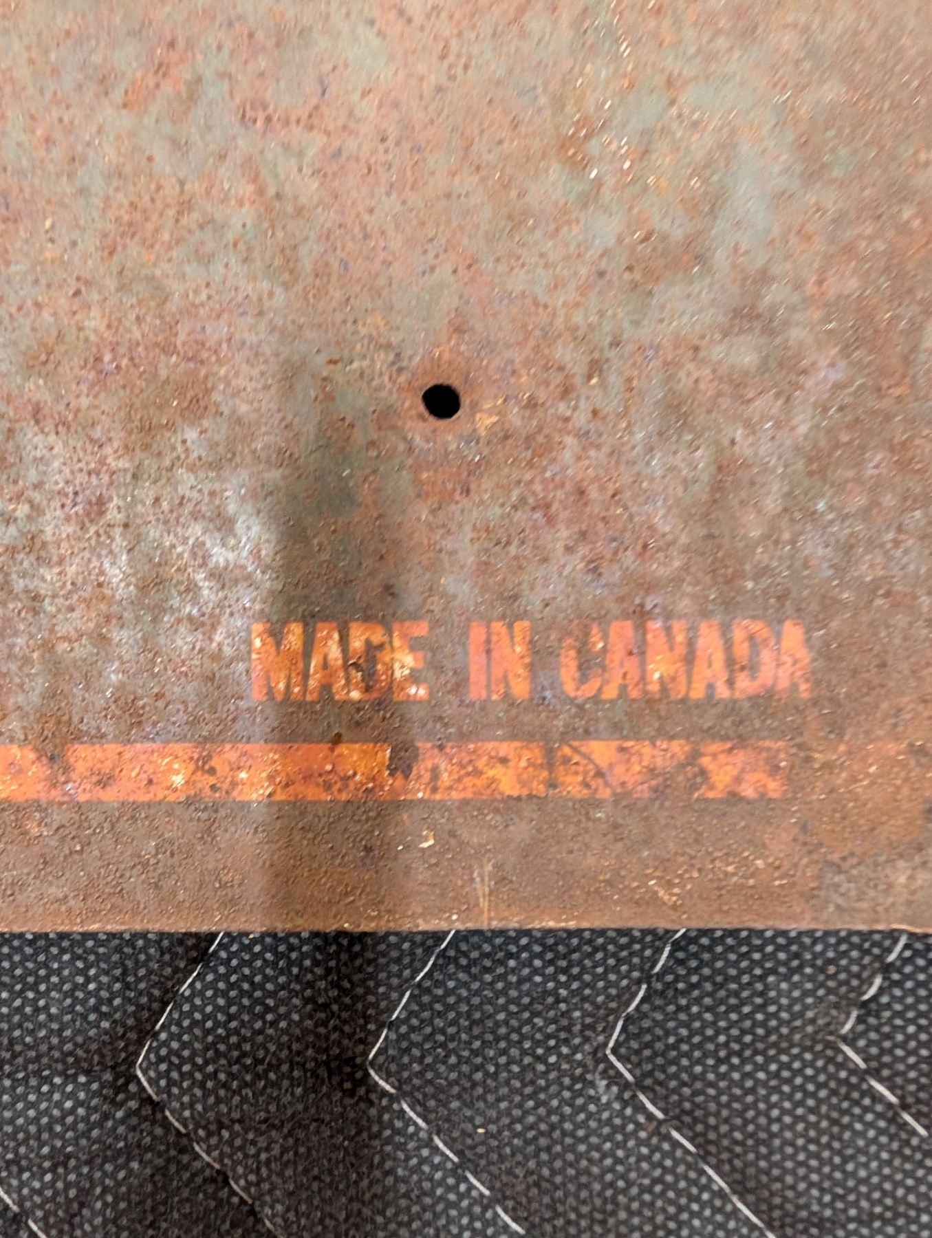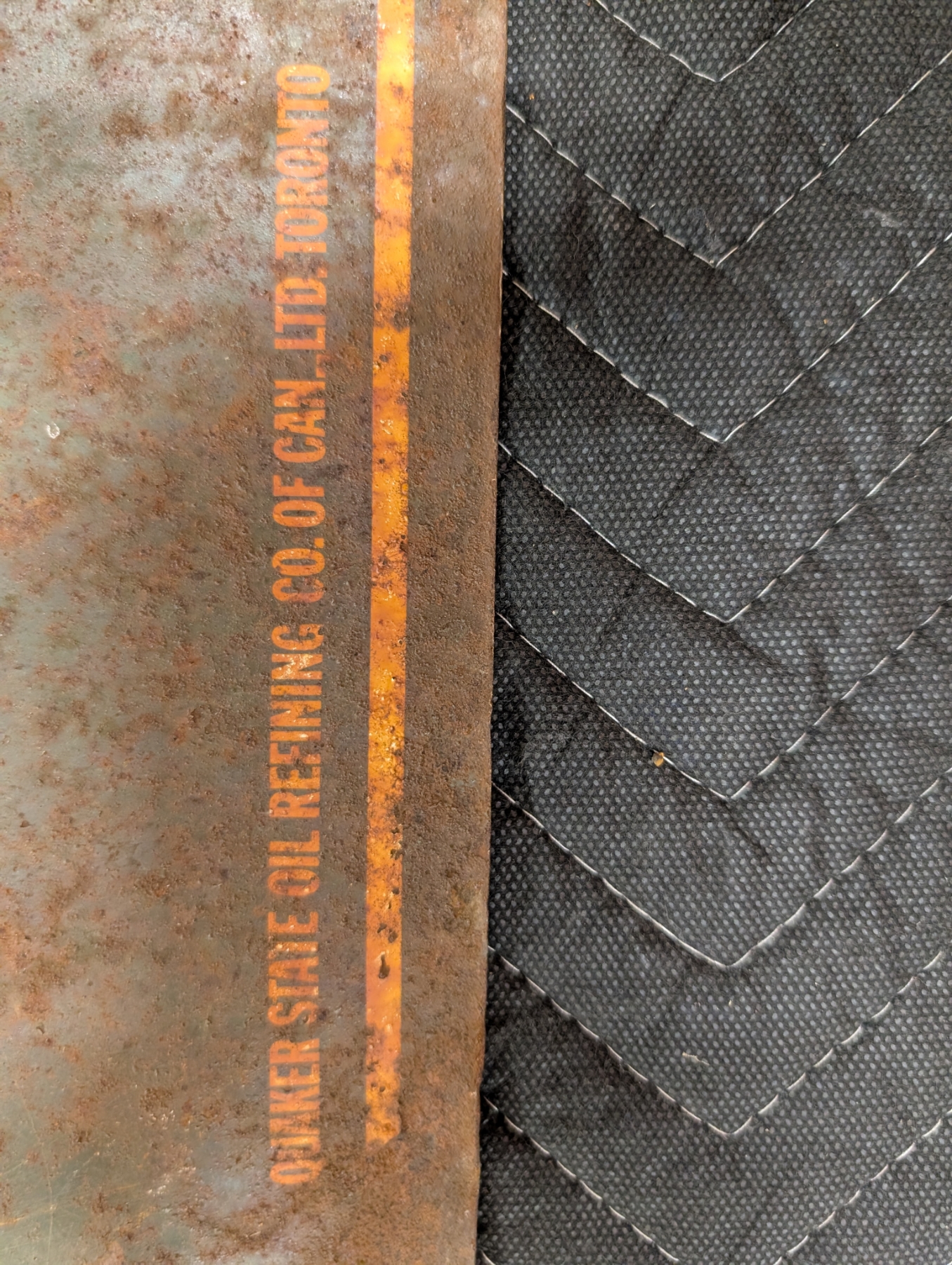 Early patina Quaker State heavy painted metal Tombstone hanging sign! Made in Toronto, Canada! Measures 29 inches by 26.5 inches! Made for Canadian market!