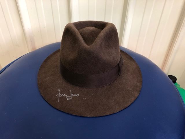 RARE INDIANA JONES BRANDED HAT SIGNED BY HARRISON FORD. AUTOGRAPH VERIFIED BY GLOBAL AUTHENTICS